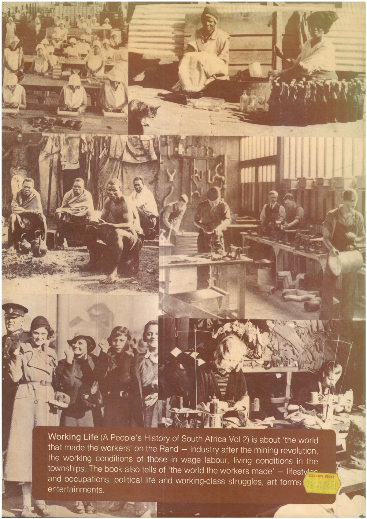 Callinicos, L. (1987) Working Life: Factories, Townships, and Popular Culture on the Rand. 1886-1940. Vol. 2. Johannesburg: Ravan Press (Pty) Ltd.