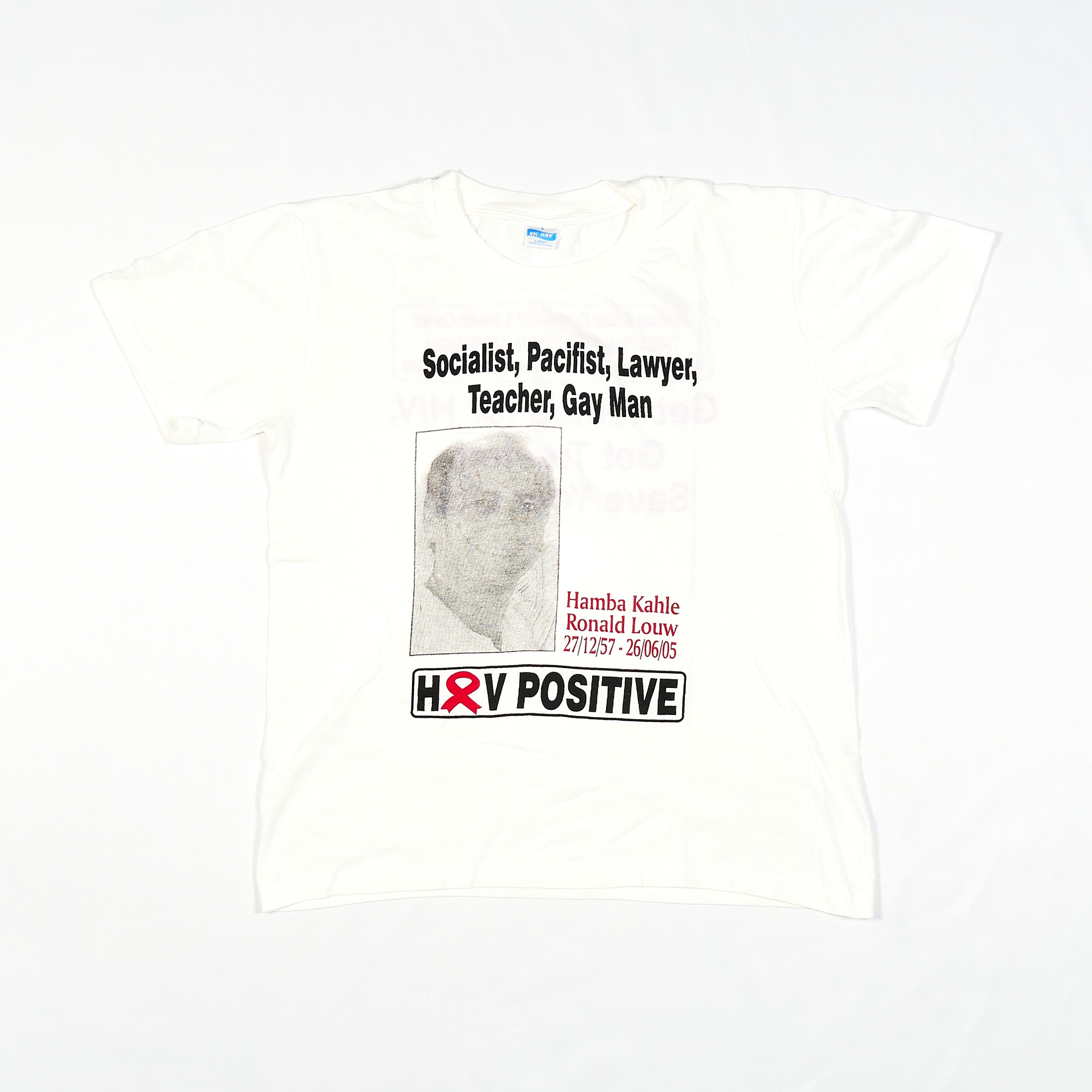 In addition to his roles in education and activism, Roland Louw was the first treasurer of the Treatment Action Campaign (TAC) in KwaZulu-Natal and a committed member and supporter of the Durban Lesbian and Gay Community and Health Centre. This T-shirt was made by TAC in commemoration of his life and work.