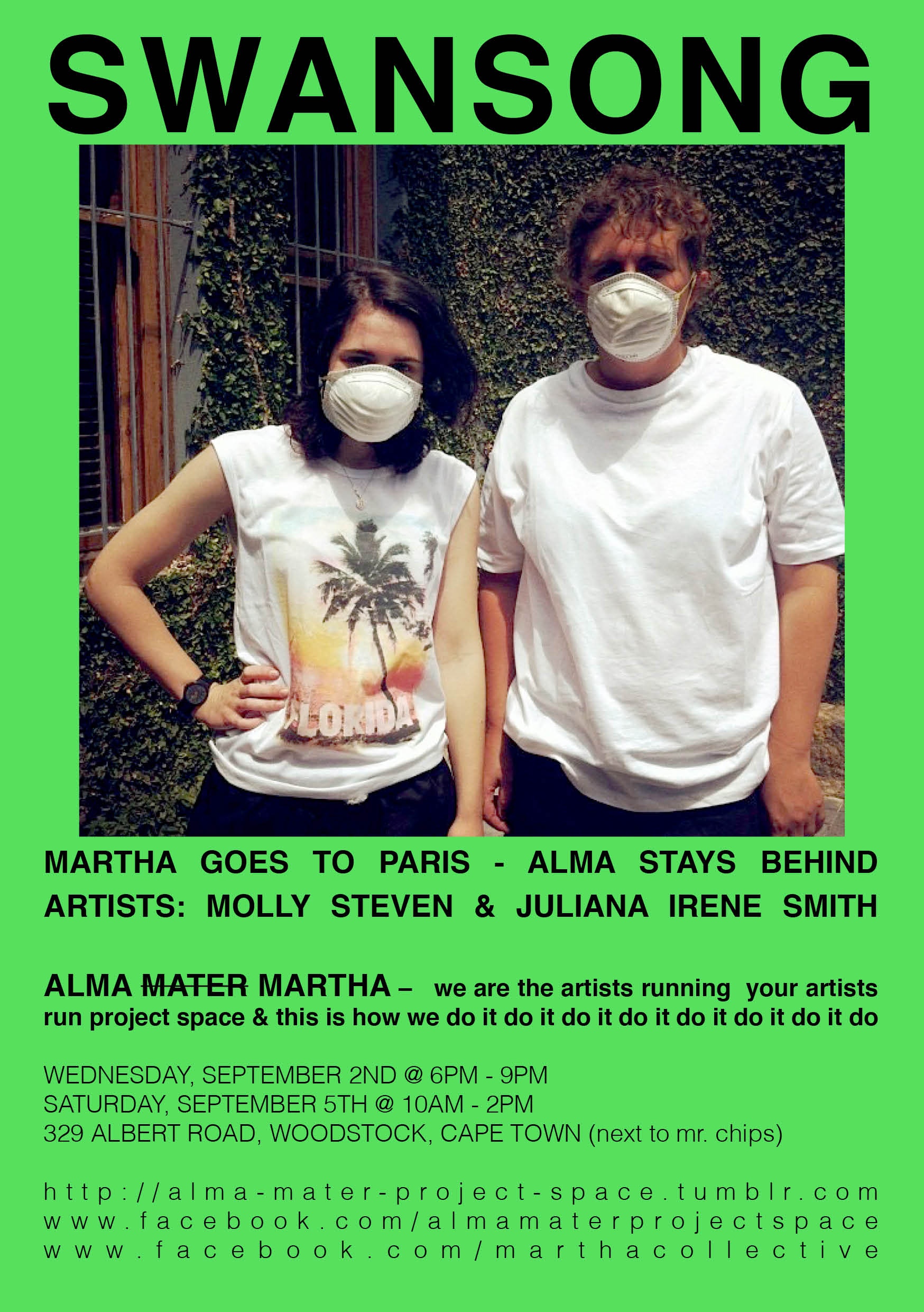 Poster: Swansong by Alma Martha, Woodstock, Cape Town, September 2, 2015. Image courtesy of Juliana Irene Smith.