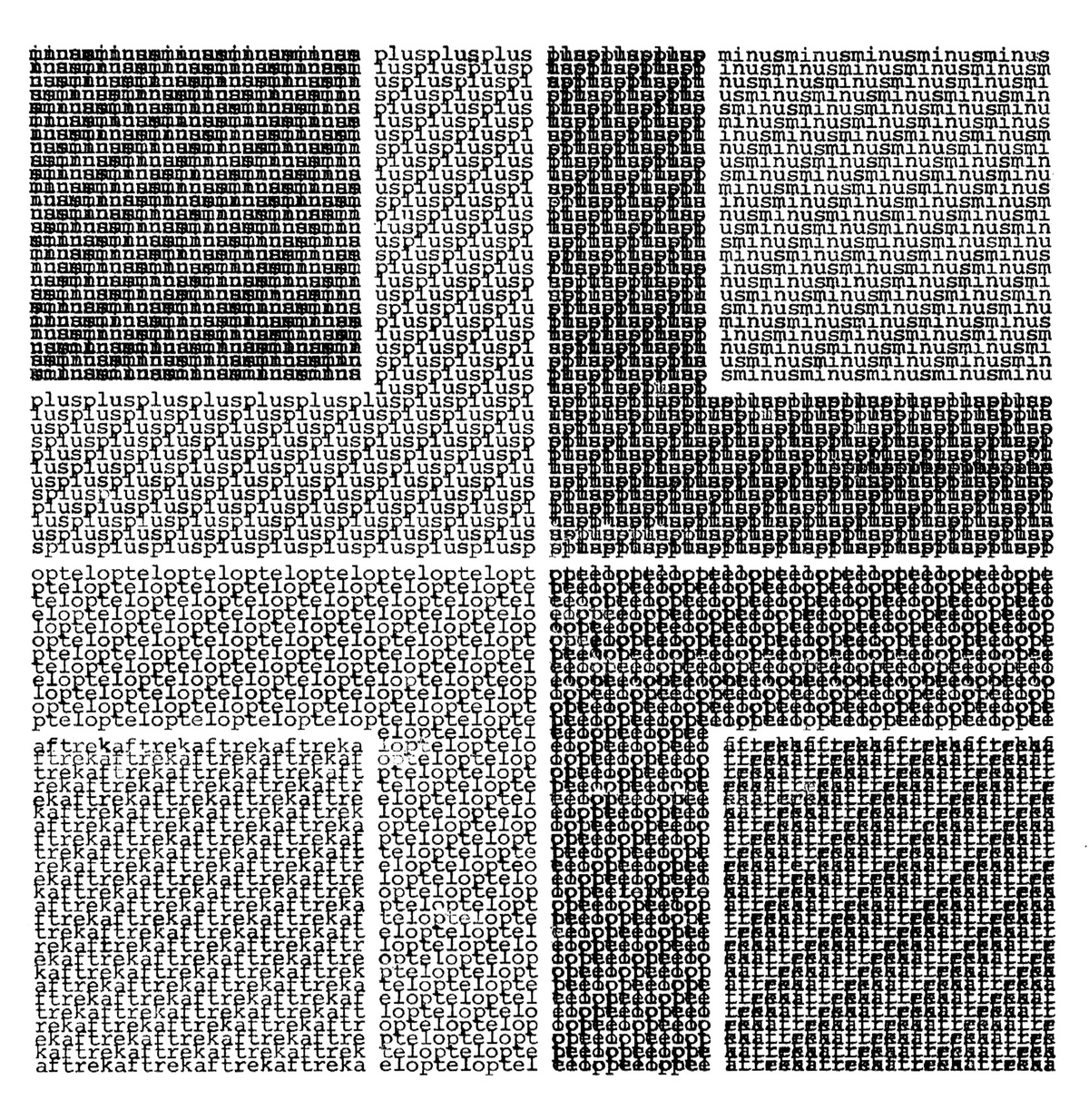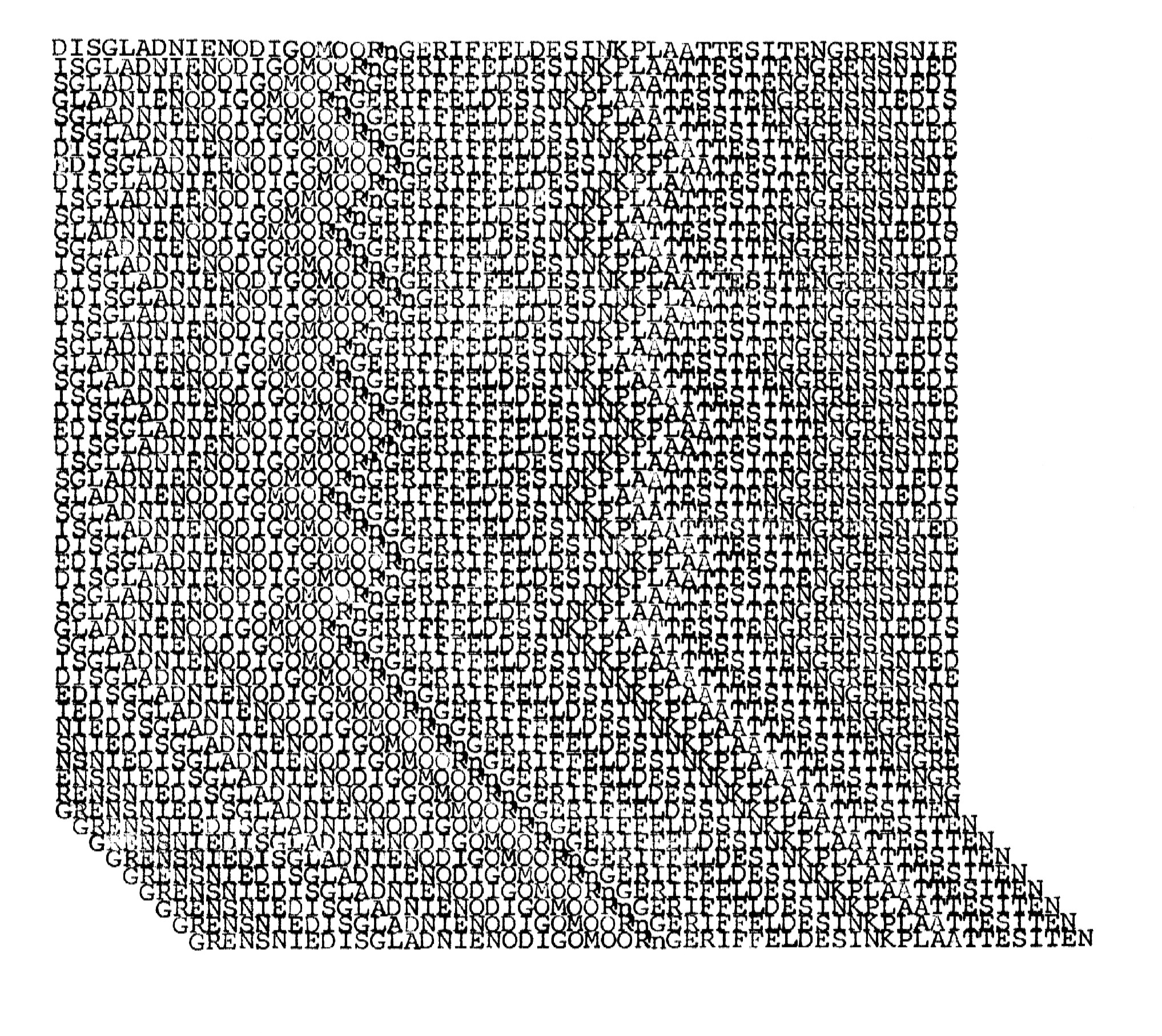 Artwork detail: Willem Boshoff, Kykafrikaans: Hekelskrif (1976–1980). Facsimiles of original poems typed on a Hermes 2000 manual typewriter. 401.7 x 157.1 cm. Artwork courtesy of Standard Bank Gallery.