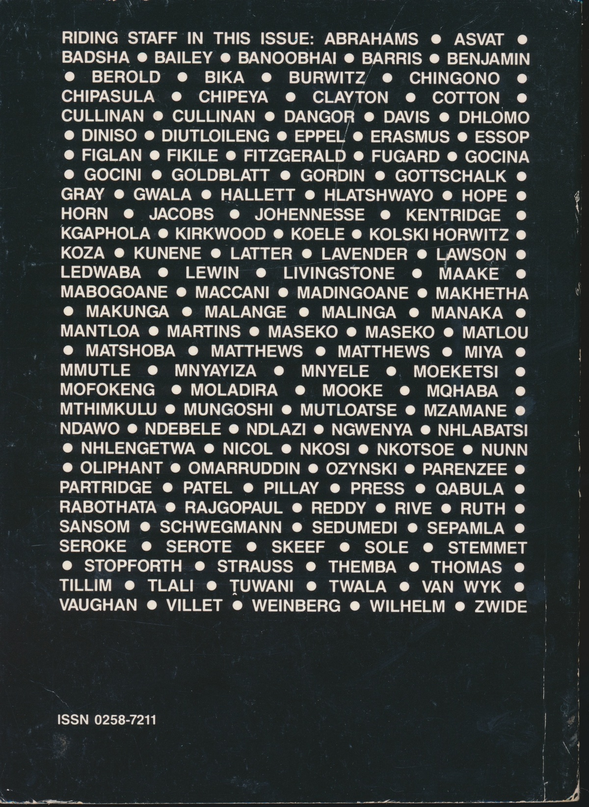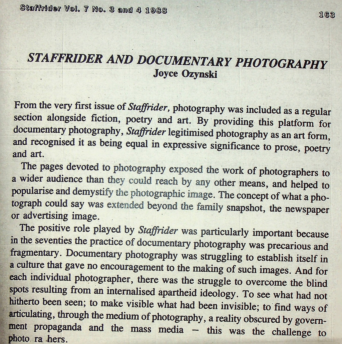 Oliphant, A.W. and Vladislavić, I. (eds.) (1988) Ten Years of Staffrider Magazine: 1978 - 1988. Johannesburg: Ravan Press (Pty) Ltd.