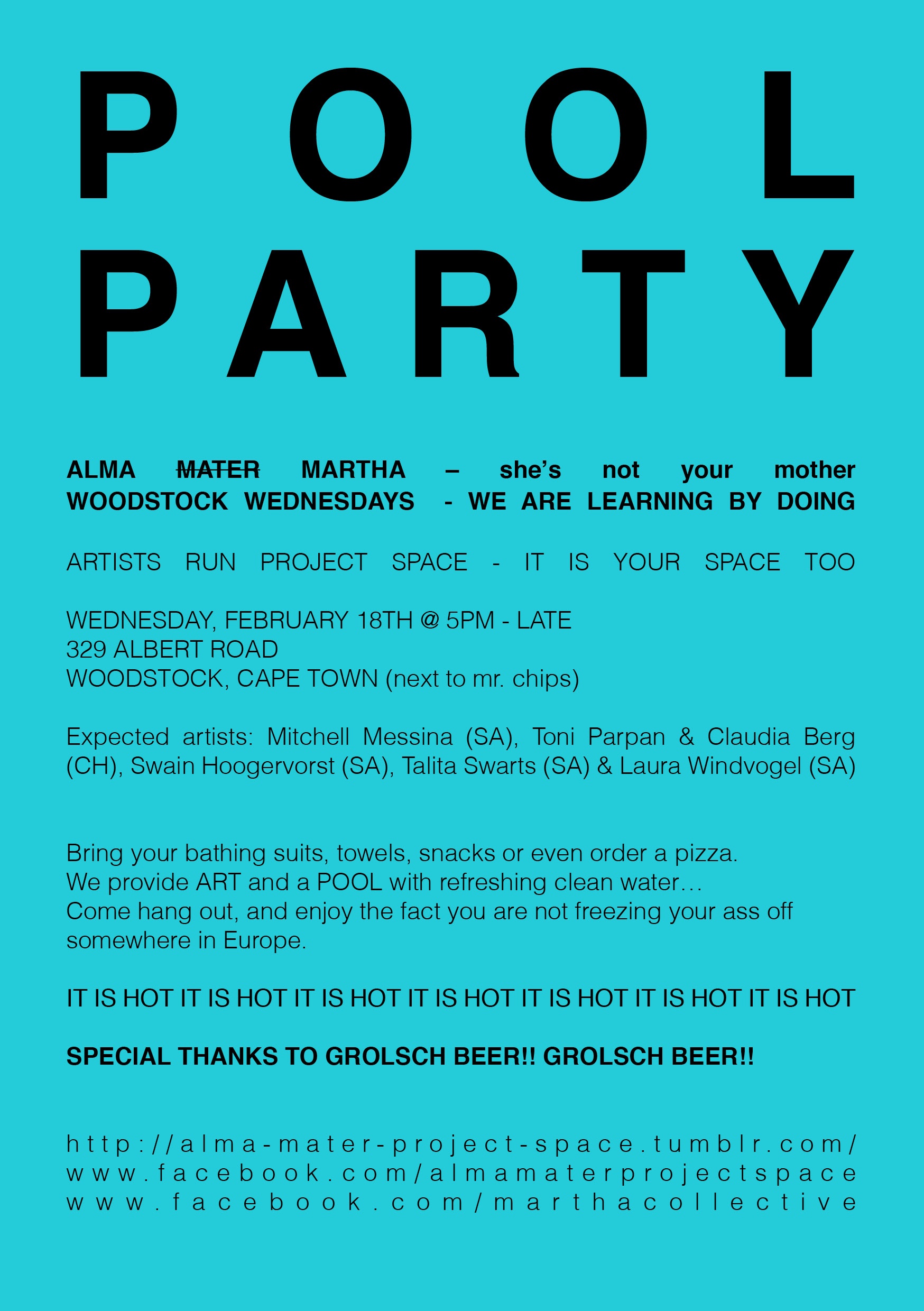 Poster: Pool Party by Alma Martha, Woodstock, Cape Town, February 12, 2015. Image courtesy of Juliana Irene Smith.