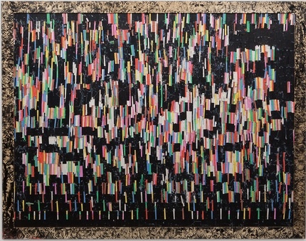 Tayou’s abstract compositions in chalk and charcoal evoke, he says, his “Ying and Yang”, with their juxtapositions of colour and darkness. To all his works, Tayou assigns a self-referential meaning as meditations on the artistic process. Art and life, he suggests, are inextricably linked. A piece of chalk is a piece of chalk and much more besides – a tool of knowledge, of communication, a dusty pigment, a colour made object. While his works might first appear fortuitous, meaning is transcribed in their material by intent rather than accident. Such is Chalk or charcoal S, an arrangement of chalk pieces pinned to a charcoal black background. From a distance, the work recalls West African tapestries; seen up close, the image dissolves into its disparate parts. Light and shadow, colour and darkness – here, the artist finds a momentary balance. The fragility of the work’s medium, held in place only by pins, suggests the provisionality of this harmony.