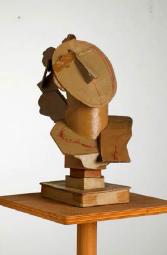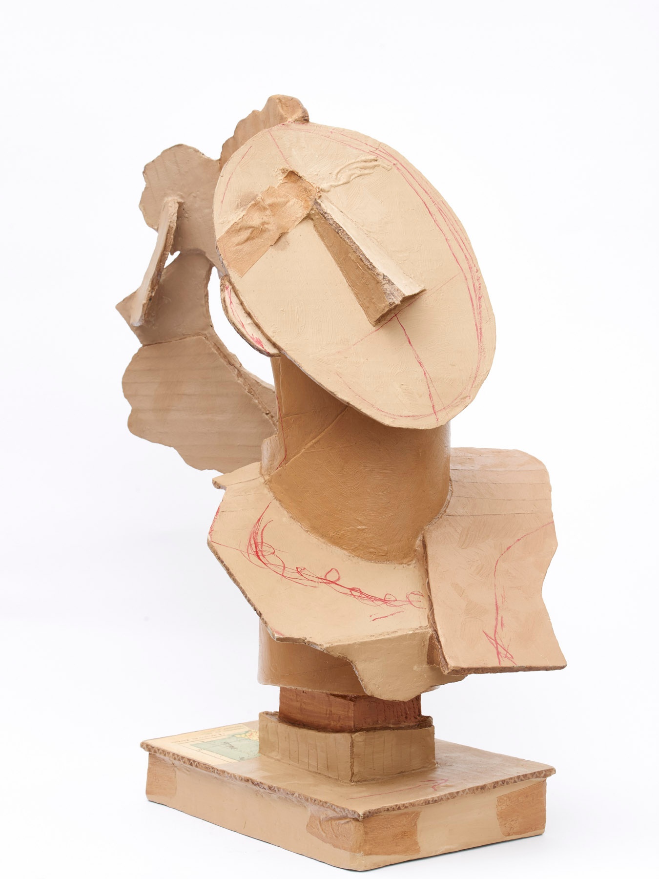 Kentridge’s bronze sculptures are curious anomalies in a practice otherwise given to precarity and proposition. They have about them a sense of finality in that they cannot be reworked or changed, having entered into a stasis his other works resist. They can no longer be reabsorbed into the artist’s studio, are no longer proposals but products. Many, however, gesture to their previous lives as haphazard arrangements. Such is Roman Head 1, which is painted to match the material it once was – roughly cut cardboard marked with red pastel lines. It appears spontaneous and light, where, in material fact, it is heavy and unchangeable. These bronze sculptures, Kentridge suggests, lend not only weight to insubstantial objects – a physical weight – but a moral import too.