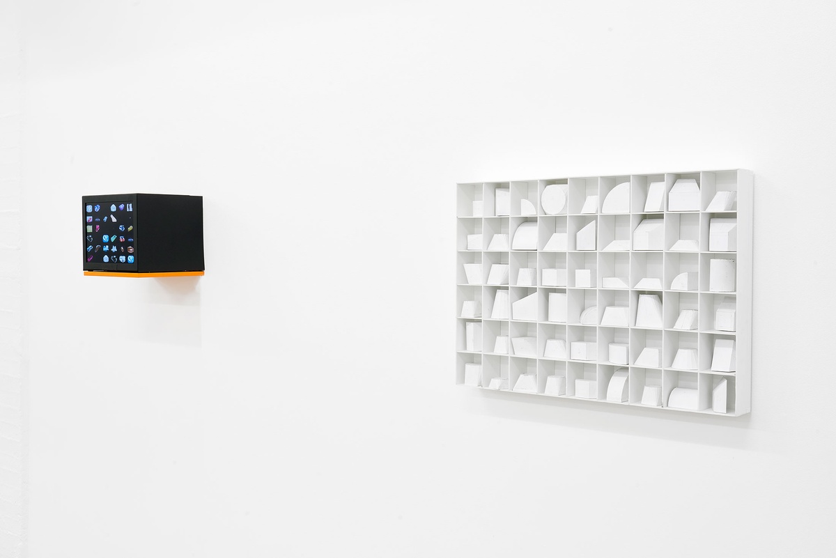 Offering insight into the artist's studio practice, Library of Forms brings together a series of cardboard models for proposed, large-scale sculptures; fragile things aspiring to more permanent medium.