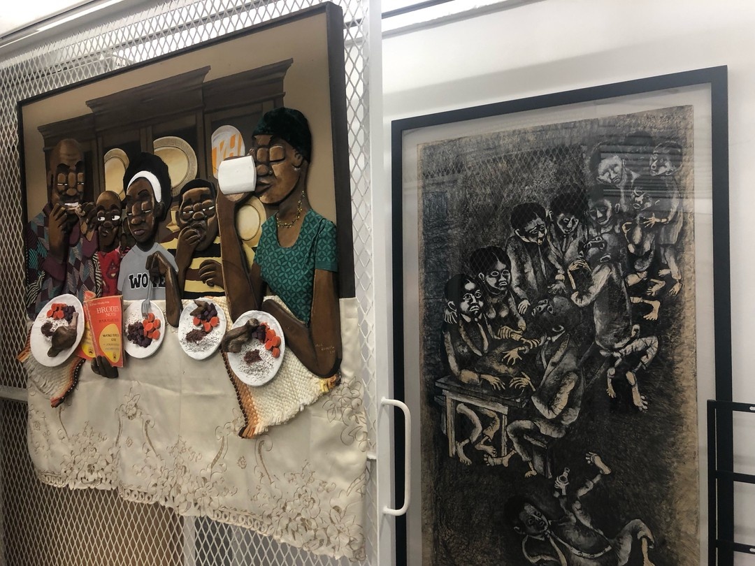 Feni’s The Last Supper is not the vision of quiet contemplation the title suggests. Rather, it depicts a disconsolate scene of poverty. There is no apparent Christ figure, no bread to break and share (the only plate on the table lies empty). The characters share instead an expression of disquiet. Such reimagined religious themes are not unusual in Feni’s work. The son of an evangelical preacher, Feni tried to reconcile the gospels with the suffering of black South Africans in a system of racial segregation predicated on Christian theology. Ultimately defeated in these efforts, he grew increasingly disenchanted with the Church and converted to Islam shortly before he died.