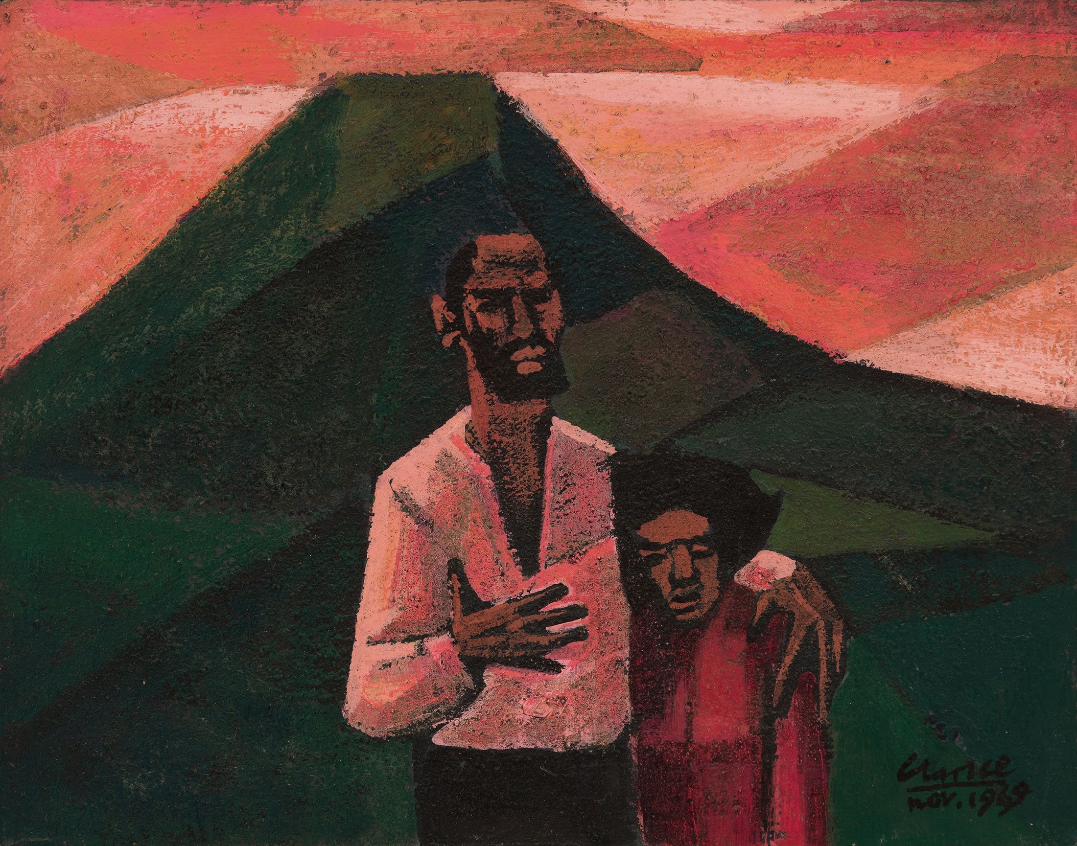 The late Peter Clarke’s paintings, prints, and poems offer an intimate window into life under the apartheid regime and the country's imperfect transition to democracy. An artist acutely sensitive to the poetics of the ordinary, Clarke played the role of ‘quiet chronicler’ and found in the domestic, everyday scenes around him a reflection of the historic moment. The many scenes Clarke depicted – both urban and rural – are at once document and symbol, as much images of place as they are of feeling. “I’ve been interested in space for a very long time,” he said of his peopled landscapes, “the spaces that separate people. The spaces that people have to traverse.” Such considerations would become particularly urgent to the artist. Clarke and his community were forcibly removed from their homes in the seaside suburb of Simon's Town to Ocean View in 1972.