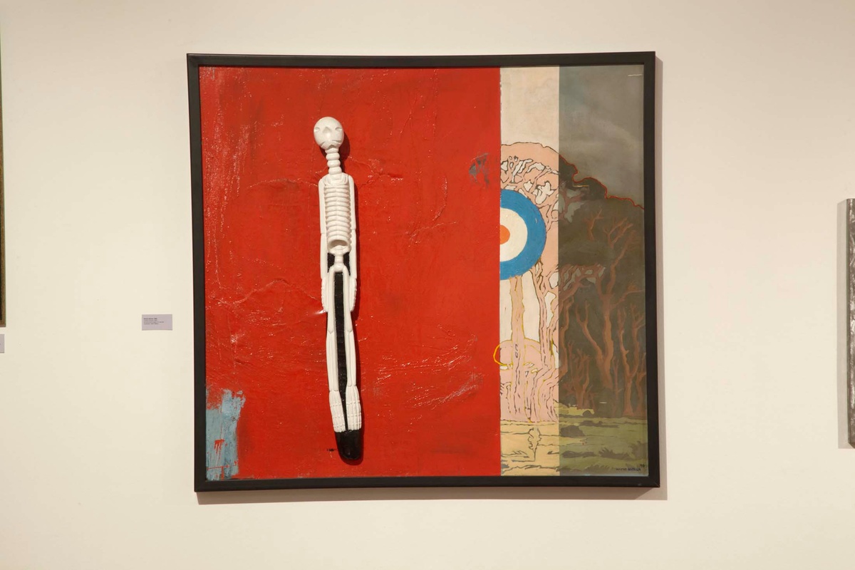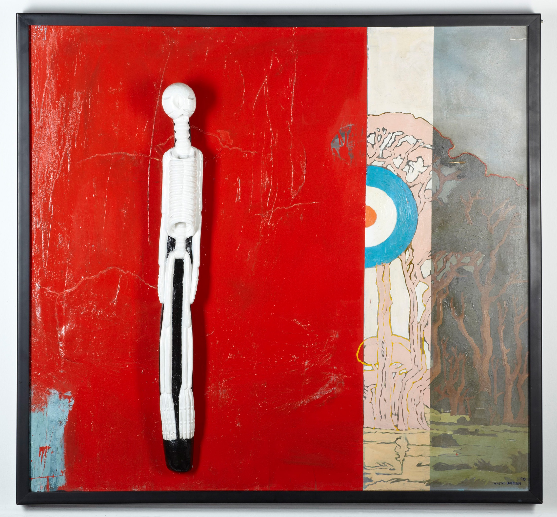 Artwork: Wayne Barker, Transit Culture (1991). Oil and found object on canvas. 118 x 127 cm. Artwork courtesy of BHP Billiton. Image © Sebastian Voigt.