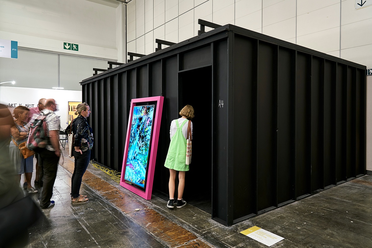 Artwork: Borna Sammak, Not Yet Titled (2017). Metal, paint, television, video, extension cord. 175.8 x 114.4 x 7.6 cm. Private collection.