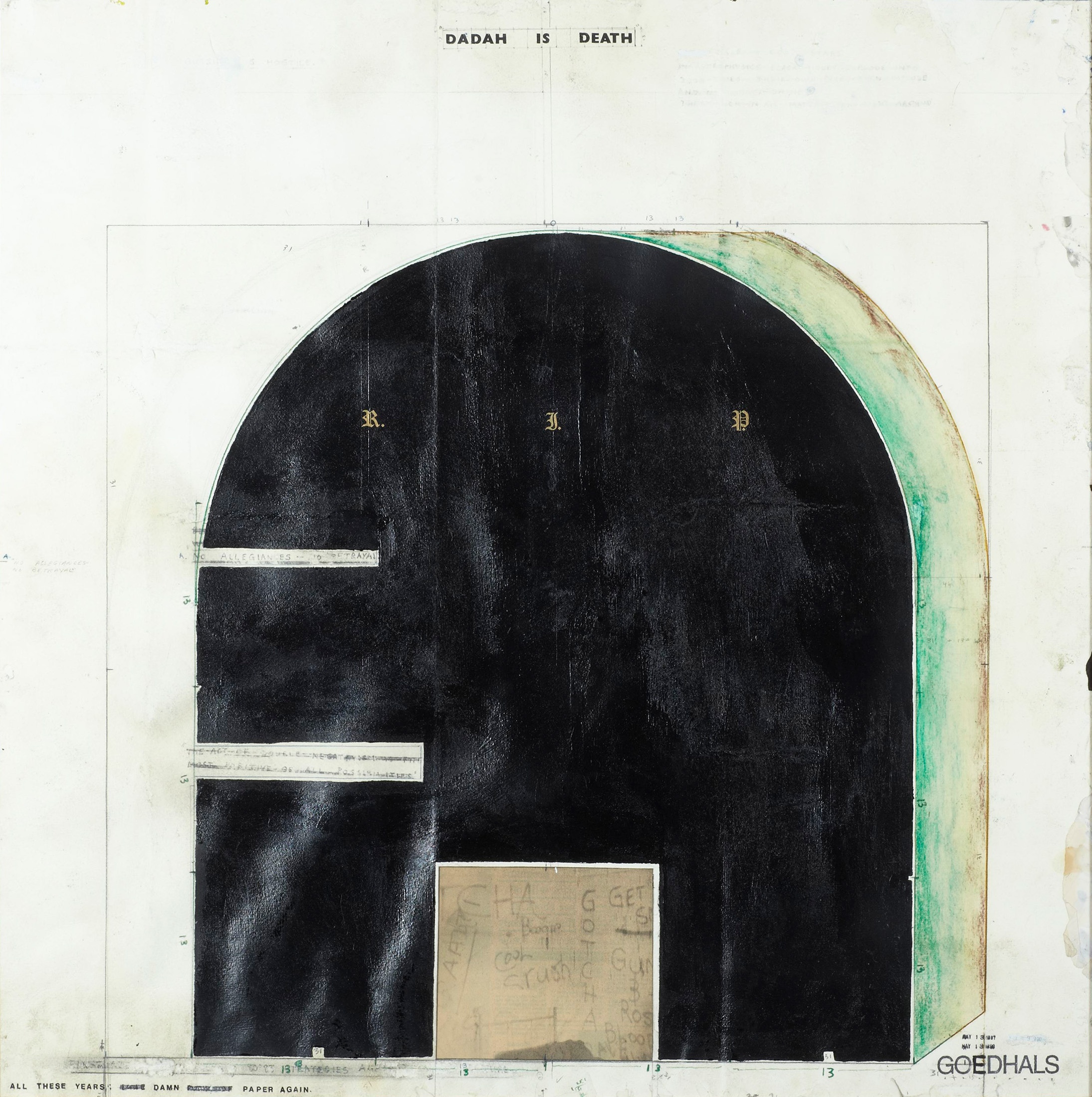 Artwork: Neil Goedhals, Tombstone (n.d.). Mixed media on paper. Artwork courtesy of Wits Art Museum. Image © Sebastian Voigt.