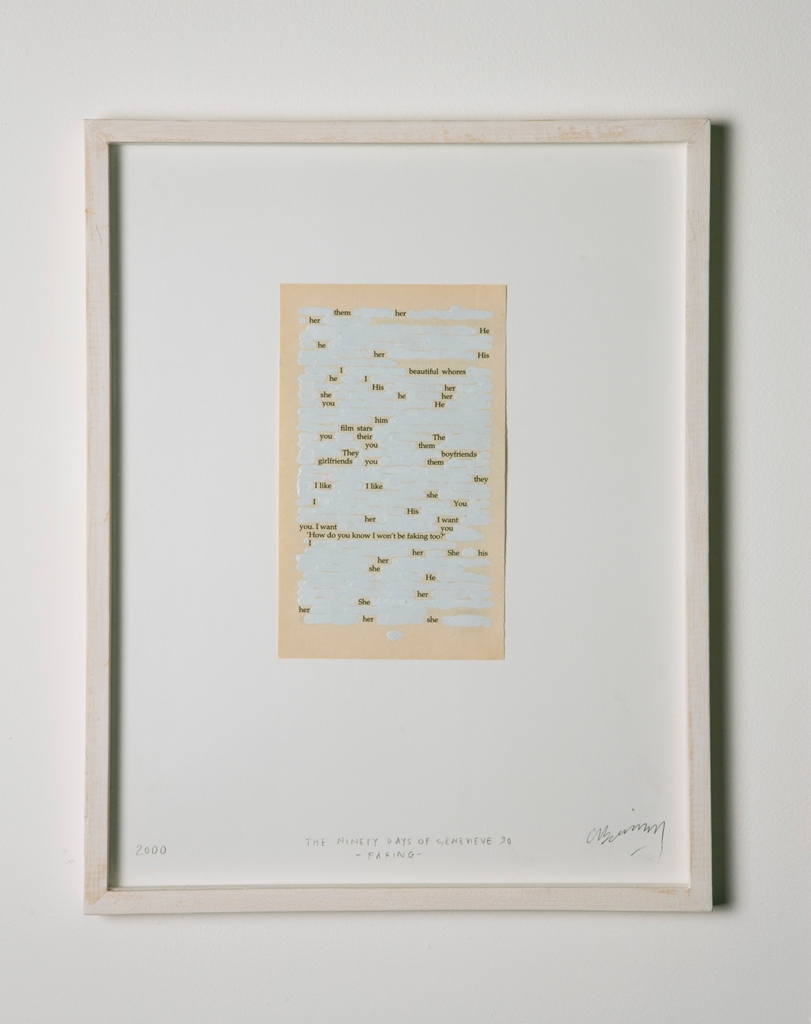 Artwork: Candice Breitz, The Ninety Days of Genevieve 90 – Faking (2000) (Ghost Write Series). Tippex on paper. 17.5 x 10.5 cm. Artwork courtesy of francesca kaufmann. Image © Roberto Marossi.
