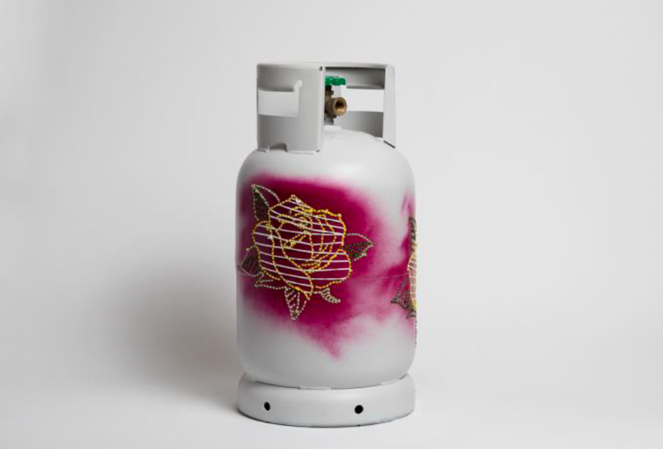 To progress 'hand over fist' is to perform the task at hand so rapidly that it may appear effortless, at times even overwhelmingly so. From the nautical British description of sailors climbing a rope, done 'hand over hand', the adapted phrase is an Americanism most commonly used to refer to money – to making it, which, in a speculative economy, can translate as quickly into spectacular and sudden loss. Hand Over Fist is the title of the exhibition in which Zagursky's gas canister and embroidery works first appeared. They are discomfiting objects. While an embroidery needle worked against the canister's steel skin may not contain the strength to pierce its housing, the latent threat of explosion is enough to place the object in tension: energy source, artwork, or unintended weapon? Of the artist's 'pop' iconography, Sandy Di You writes: