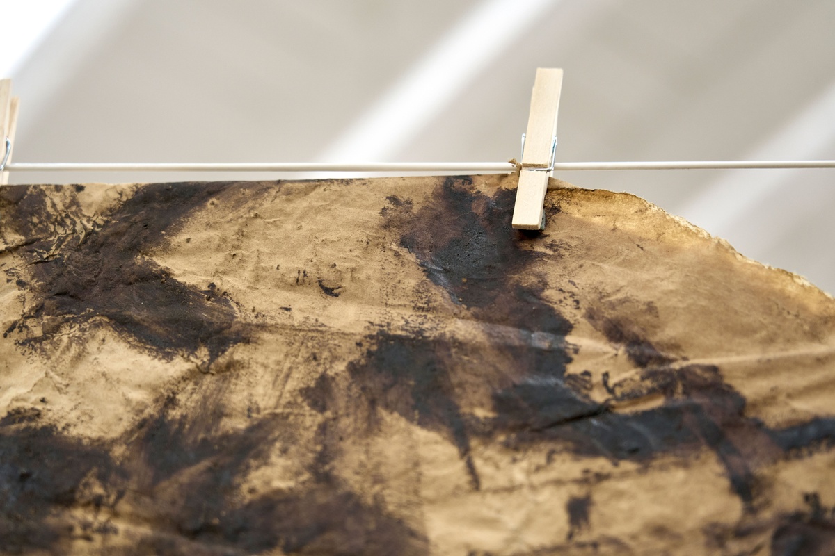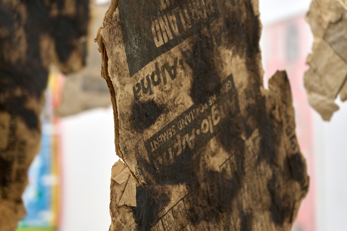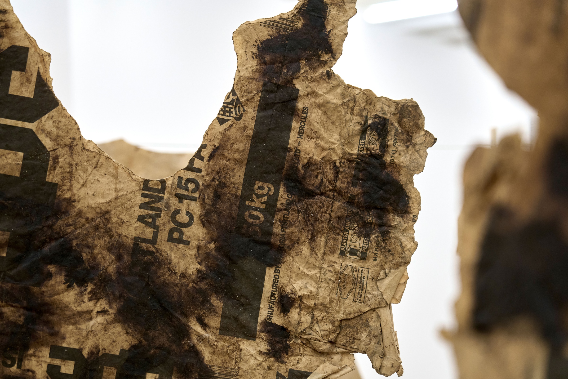 This immediacy of working with materials arising from the location in which the artist finds himself invariably becomes its own kind of social record – a gesture towards time-keeping and a subjective mapping of place. Langa’s work is perhaps fugitive, an adjective he has offered up to describe his practice, in that the artist’s subject is more often transitory, of a moment soon passed, a self-portrait of the self in all its flux and complexity.
