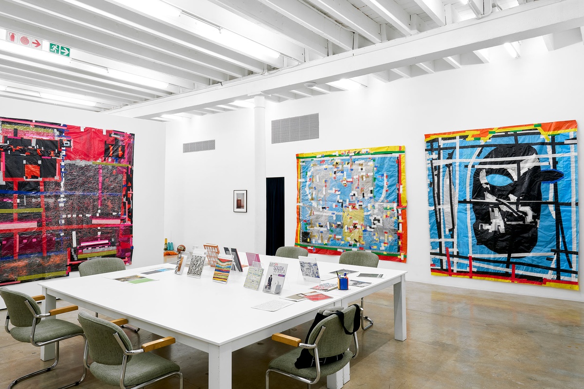 The artwork that first brought him renown in 1995, made from repurposed cement bags, set the tone for Langa’s unfolding practice, marked by a distinct material confidence and economy of means. Untitled, assembled at his mother's home in KwaMhlanga and informally referred to by curators and critics at the time as ‘Skins’, was exhibited at the Rembrandt van Rijn Gallery in Johannesburg and later acquired by the Iziko South African National Gallery in Cape Town. This precipitous success was shortly proceeded by the artist’s two-year residency at Rijksakademie, during which time he participated in biennales including Johannesburg, Istanbul, and Havana (all 1997), a list to which he added in the following decade to include both São Paulo and Venice twice over (1998/2010 and 2003/2009 respectively), Lyon in 2011. Berlin and Dakar followed in 2018. Reading his works as indexes of memory, one can experience crossing over that suspension bridge between the “small communities” of youth into the world overseas. By his own measure, he was at the time “formed but unformed, uninformed,” finding meteoric fame in the post-apartheid optimism of the late 1990s. The experience – of being South African, black, always feeling other, living in a foreign country under the glare of artworld limelight – was a mixed blessing. Much like the title of an early photograph from 1998, he felt Far Away From Any Scenery He Knew or Understood. Having stepped into this astounding number of international biennales so quickly, the funding opportunities one might suppose follow an art career of significant international renown had not yet caught up. By European and American standards, he was 'skint', "arriving with my small bag of tricks and making it all happen,” a singular practitioner, inexperienced to the ways of big cities, of art world opulence, yet gathering and making use of the substances and mediums in his vicinity, whether plastic or cement bags, nail polish, candle wax and crayon, ink, watercolour, pencil, or dust.