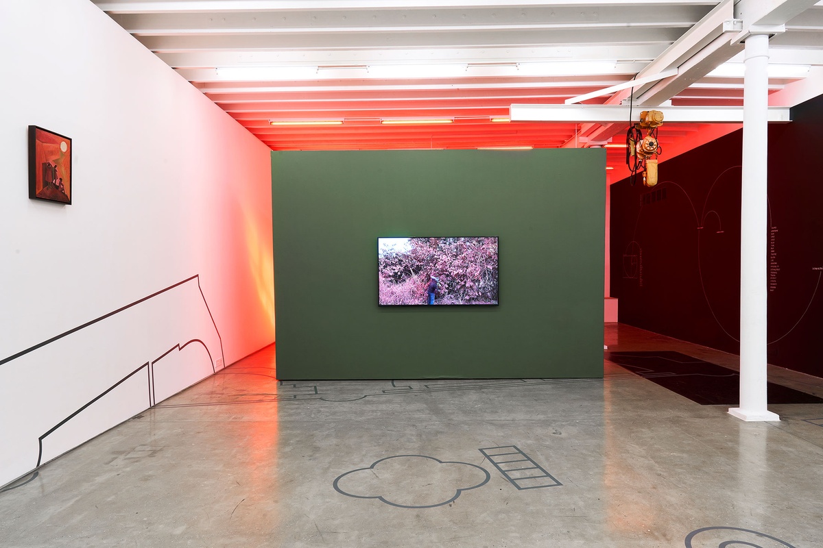 Named for the Kiswahili word for dust, Vumbi recounts a performance of futility. Filmed in rural Tanzania during the dry season, the scene is a monochrome brown, the foliage along the roadside heavy with clinging dirt. The artist steps into frame, holding a rag and a fuel canister of water. One by one, she begins wiping leaves clean with methodical exactitude, revealing their brilliant green against the sepia surroundings. Thirty minutes pass. The artist walks away, leaving her small offering of viridescence to be again covered by dust. Any control the artist appeared to have, any progress she might have made, is subsumed by the environment. “It questions how we look at land,” Kiwanga says of her film, “particularly when our gaze is towards whatever gains might be had; questions of ownership and power struggles over land itself.”