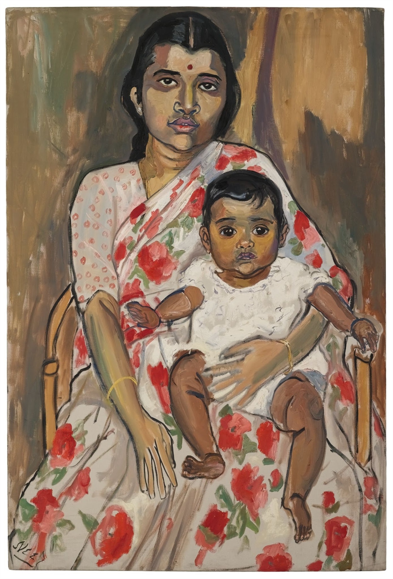 Mother and Child is among Neel’s many portraits of motherhood. For the artist, it was an emotionally fraught theme, yet one she felt drawn to. Having lost her first child to diphtheria and her second to Cuba (the young girl taken by her father under false pretences), Neel had suffered much as a mother. It is perhaps unsurprising then, that for all the apparent tenderness of Neel’s motherhood portraits, something like apprehension colours the paint. Like Mother and Child, these paintings appear as much a portrait of the sitters as an image of the artist, her fears and desires. To Neel, no painting was without her presence. “The self,” she said, “we have it like an albatross around the neck.”