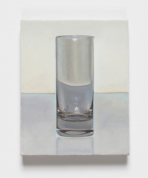 That an empty glass on a table might prove a compelling subject for over forty years and more than five thousand paintings of modest scale is perhaps surprising. To Dreher, however, returning time and again to the same glass in the same corner of his studio every day and every night, the series became a study in sameness and difference. From 1974 until his death, Tag um Tag guter Tag (variously translated as Day by Day Good Day and Every Day Is a Good Day after the Buddhist proverb) is an accumulation of small revelations: the glass seen again and anew, “as if I were seeing it for the first time.” In the artist’s dedication to repetition, critic Emily Hall wrote, the collected pictures become “an aggregate of still paintings and temporal movement, like a decades-long filmstrip that follows no logic and evinces no progression.” The discrete paintings are coloured by subtle shifts in tone; the studio window reflected in the glass marking the time of day; at night, a light fixture. “The confinement to a single motif,” Dreher said of his many glasses –