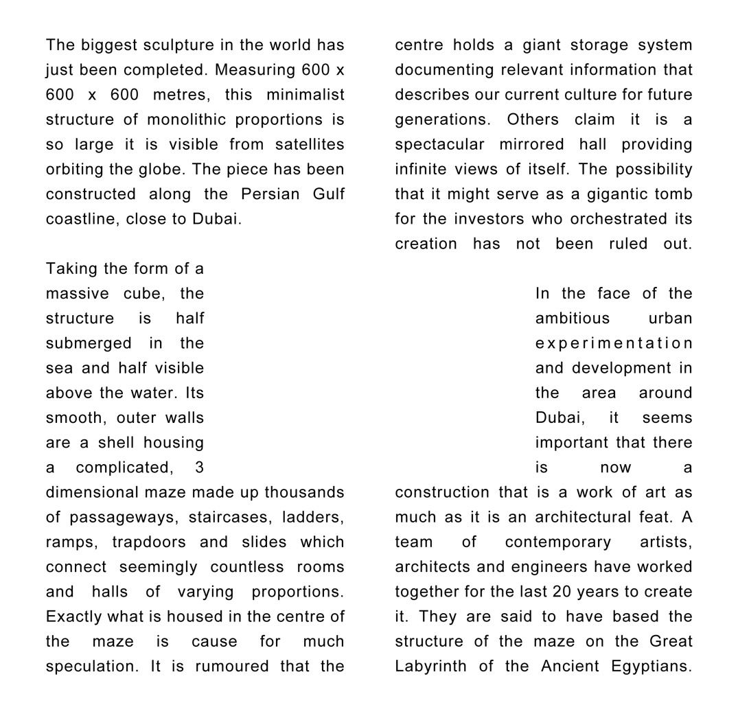 Artwork: Ruth Sacks, The Biggest Sculpture in the World (2009). Text on wall. Dimensions variable. Artwork courtesy of the artist.