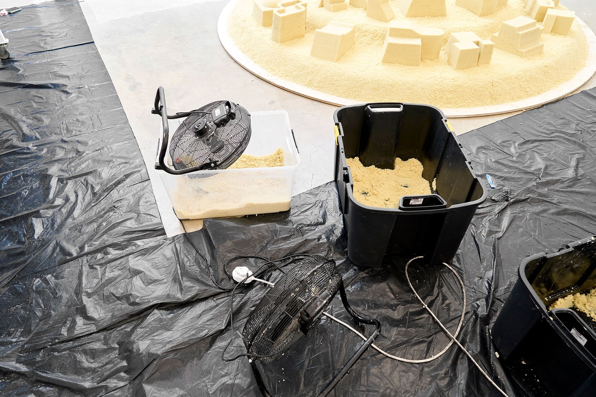 This is not a ruin. I am not representing a ruin. The crumbling of this installation throughout the exhibition is significant of life, of the living process of the architecture through time. For me, it’s very important that Ghardaïa starts to crumble, for one to think about time.