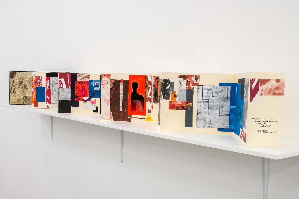 Artist Peter Clarke Title Red Cloud, Camel and Afro Comb, Compiled in April 1997 Date 1997 Materials Mixed media on paper, cloth, and leather binding Dimensions 29 x 38 x 1.5 cm Credit Private collection