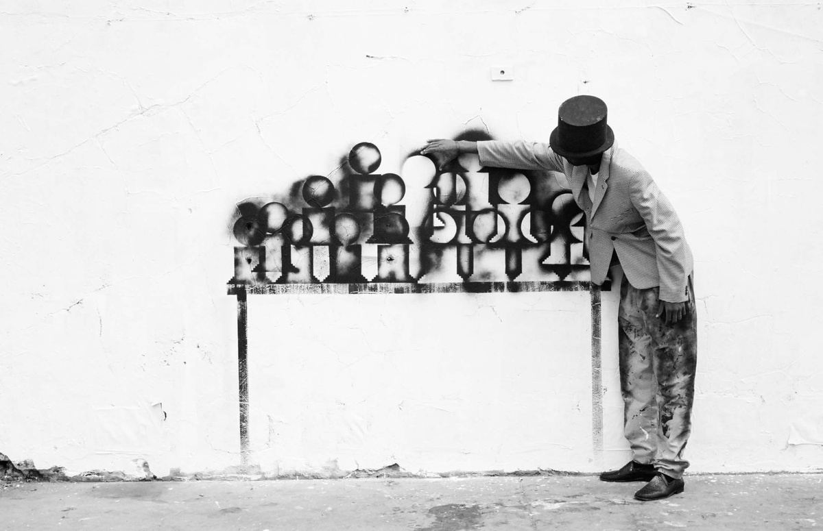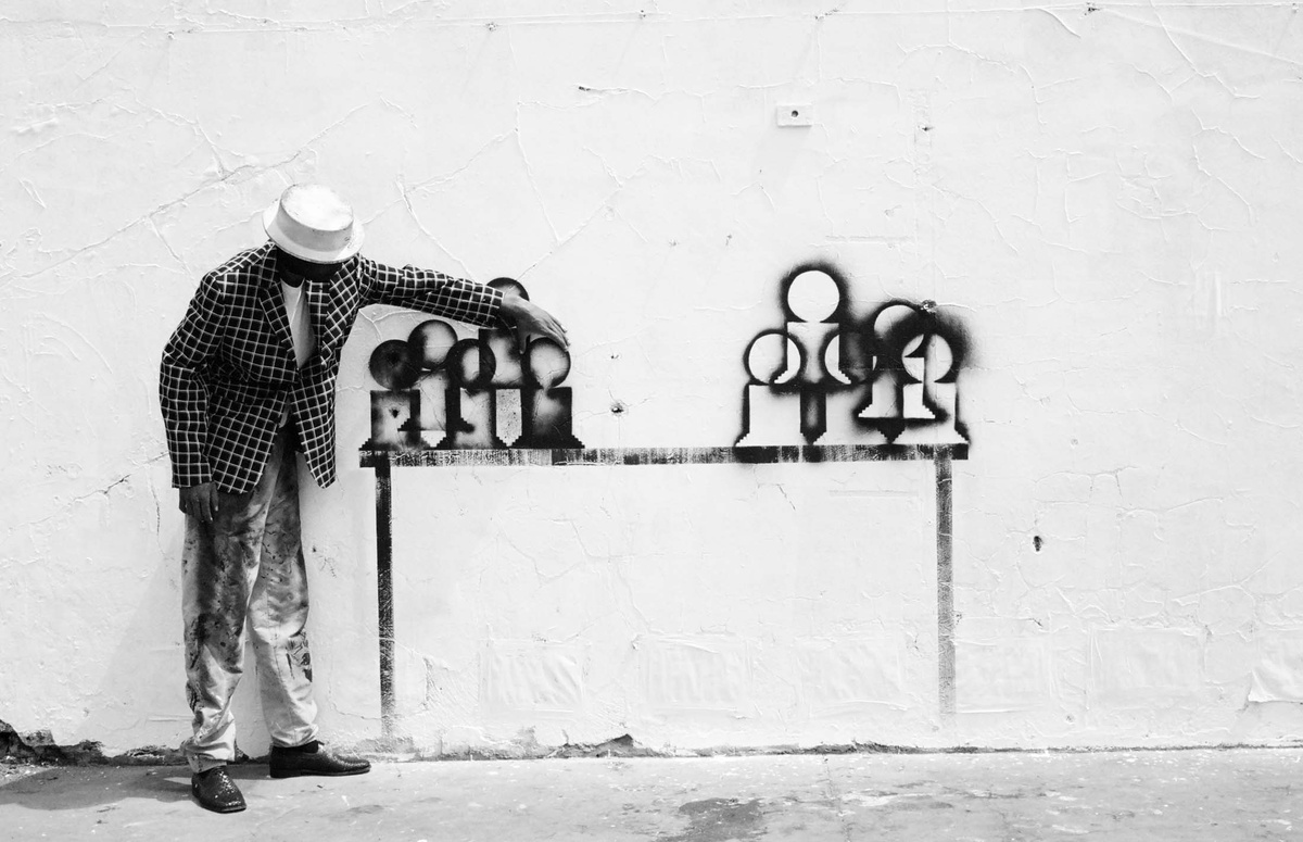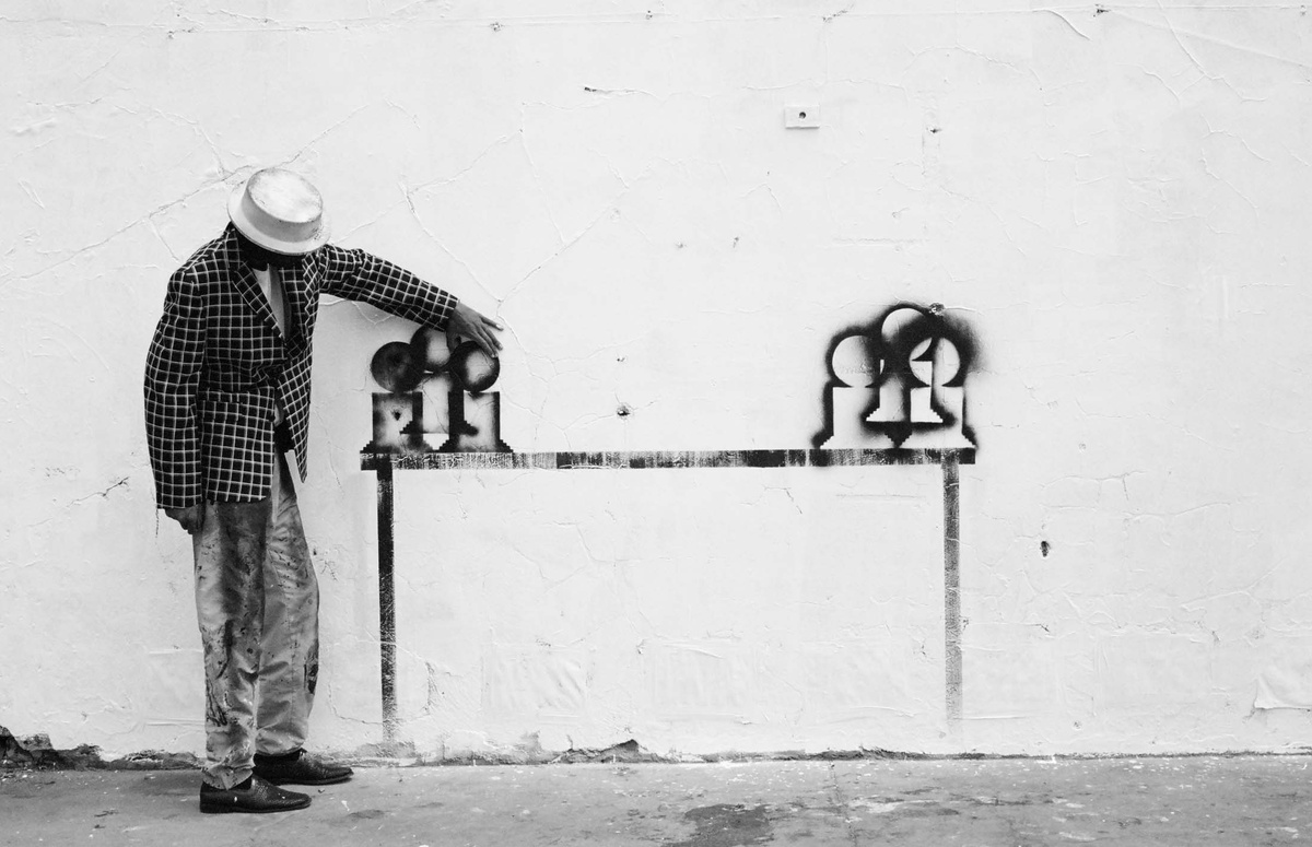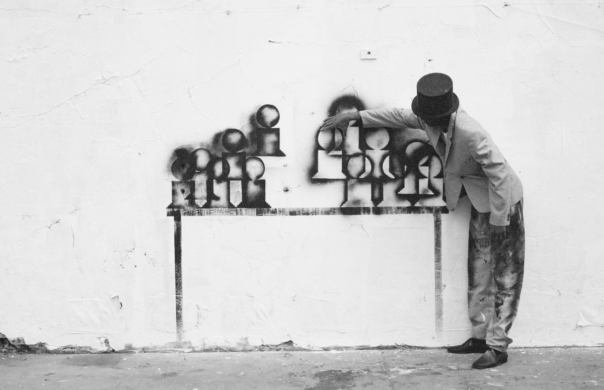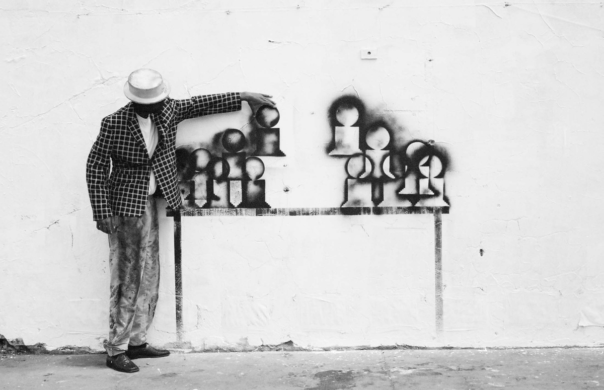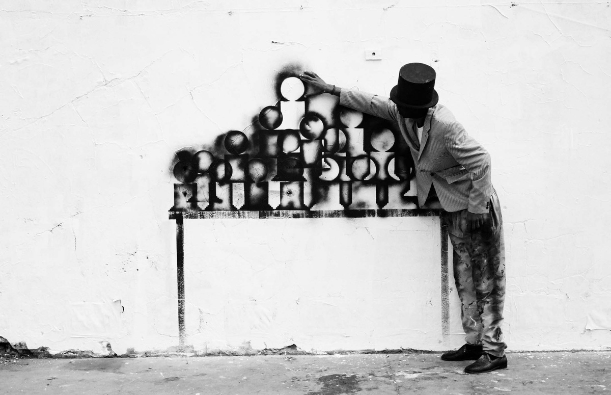 In all Robin Rhode’s work, line is primary – as formal device, as progression, as narrative structure. With the simplest propositions, he gives expression to imagined scenes. His work more often persists as document, the original offering only transitory. In charcoal, chalk and paint, Rhode creates sites of engagement within the city. The sidewalk becomes stage; an actor, always anonymous, appears. A series of photographs are taken, a stop-frame animation is made. Performance, drawing, photograph – the resulting works are all these mediums distilled to image, be it static or moving. The scene is later painted over; the actor departs; the set returns to inner-city wall. Largely produced in Rhode’s native Johannesburg, the works’ political implications are apparent, touching on such issues as urban poverty and violence, street culture and its aspirations. Rhode, however, considers himself more a formalist than social messenger, an artist concerned with mimesis – with art’s illusion – and the many tensions between image and object; the two-dimensional and the three-dimensional, represented and real. This is particularly true of his more recent work, which pairs both colour theory and geometry with the performing body.