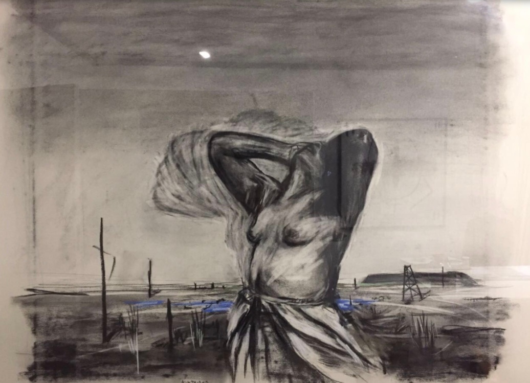 Drawing from Felix in Exile shows the character Nandi moments before she too is shot and joins the many bleeding bodies left lying on the dry earth.