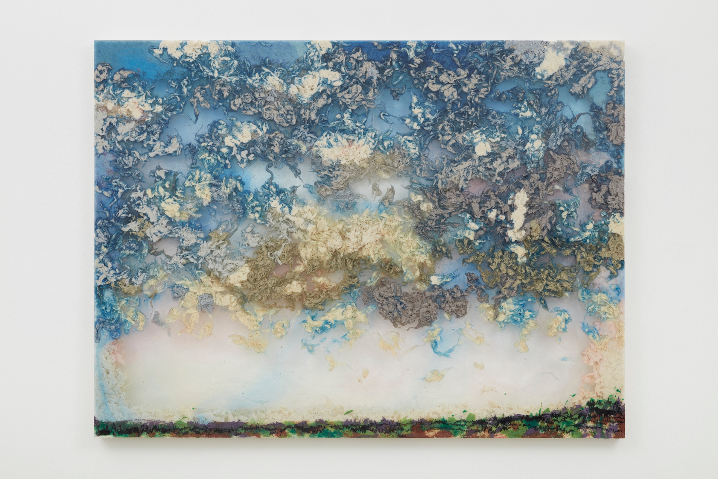 Kevin Beasley is preoccupied, above all, with provenance, with the inheritance of found objects, scenes and sounds. Caught between the legible and the obscure, his work blurs the divide between objecthood and personhood, gestures always to the trace of the body, and asks what cultural fragments might suggest about lives and living. His conceptual and material fulcrum is cotton, the history of cotton and everything it has come to represent in black American culture as a symbol of labour and oppression. “Cotton, it takes me everywhere,” Beasley says. “Politics, social relationships you have, you think about economics…reparations. It all just unfolds.” That his home state of Virginia was built on cotton and slave labour, and that the plant continues to grow on his family farm, invites a fraught familiarity into his work. Working with the social fabric of clothing, Beasley explores not only the past but aspirations for the future as reflected in society’s objects.