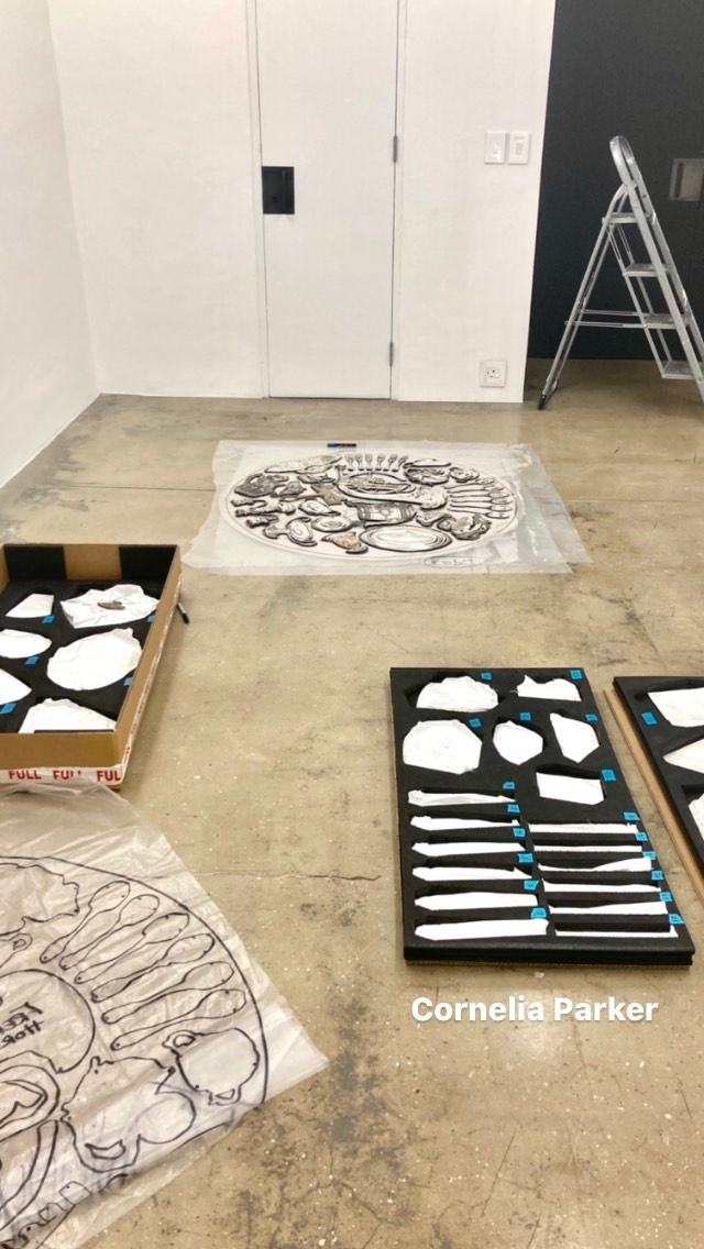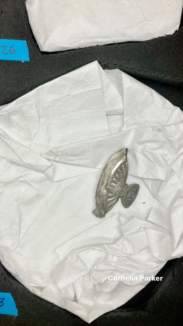 “Silver is commemorative, the objects are landmarks in people’s lives. I wanted to change their meaning, their visibility, their worth… In the gallery the ruined objects are ghostly levitating just above the floor, waiting to be reassessed in the light of their transformation” (Cornelia Parker, 1990).