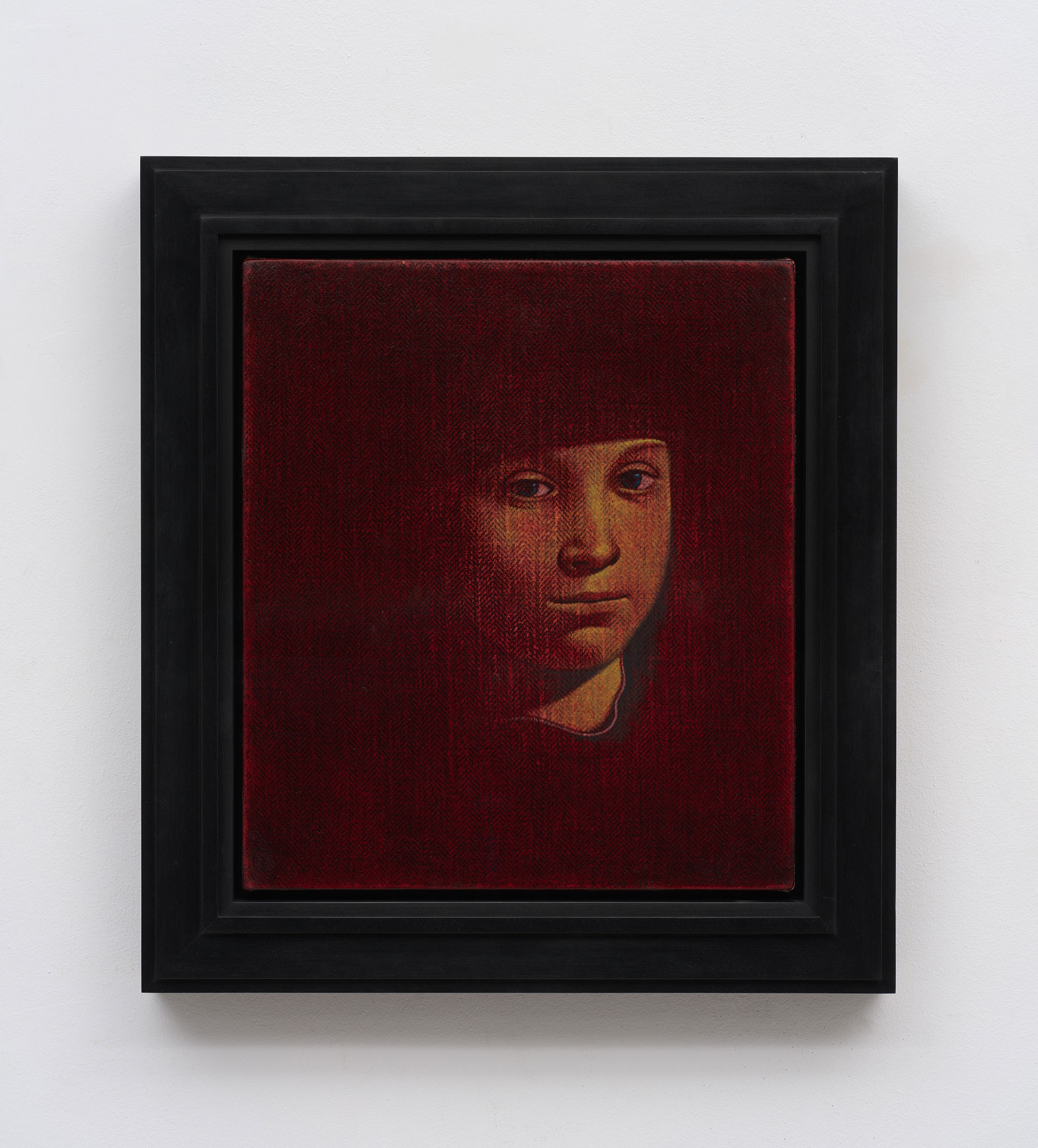 Artwork: Oliver Osborne, Untitled (2024). Oil on herringbone linen. 40 x 35 x 3 cm. Private collection.