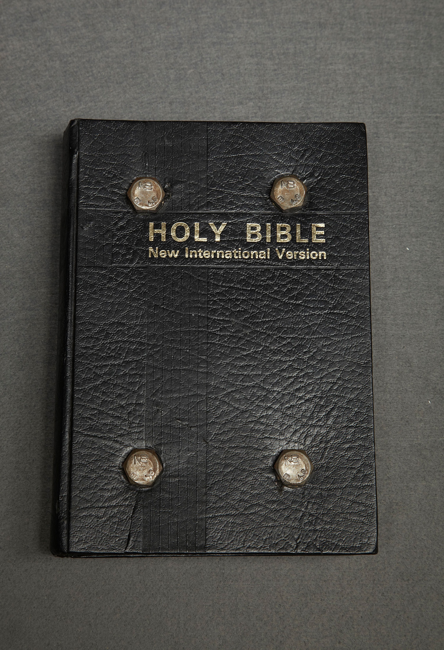 Artist Kendell Geers Title Holy Bible: The New International Version (Closed) Date 1988 Materials Artist's book Edition Edition 8/8 from an edition of 8, plus 2 artist’s proofs. Signed with certificate. Credit Warren Siebrits collection. Courtesy of Stephen Friedman Gallery, London and Galleria Continua, San Gimignano