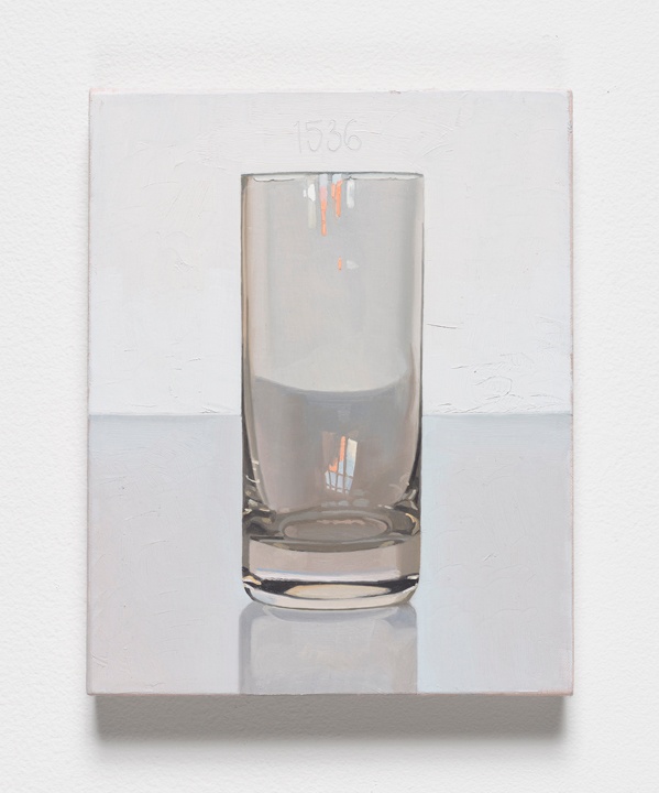 That an empty glass on a table might prove a compelling subject for over forty years and more than five thousand paintings of modest scale is perhaps surprising. To Dreher, however, returning time and again to the same glass in the same corner of his studio every day and every night, the series became a study in sameness and difference. From 1974 until his death, Tag um Tag guter Tag (variously translated as Day by Day Good Day and Every Day Is a Good Day after the Buddhist proverb) is an accumulation of small revelations: the glass seen again and anew, “as if I were seeing it for the first time.” In the artist’s dedication to repetition, critic Emily Hall wrote, the collected pictures become “an aggregate of still paintings and temporal movement, like a decades-long filmstrip that follows no logic and evinces no progression.” The discrete paintings are coloured by subtle shifts in tone; the studio window reflected in the glass marking the time of day; at night, a light fixture. “The confinement to a single motif,” Dreher said of his many glasses –