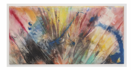 A bevel is also a facet. Gilliam faceted his canvases. Folding the fabric, the paint concertinas in upon itself, revealing, when opened, lines and planes of colour. Ray V (1970) has a bevelled edge, by which the painting becomes dimensional, cut from the wall. A stone can be faceted. So too, can a jewel. Facets, when carefully cut, create windows of light.