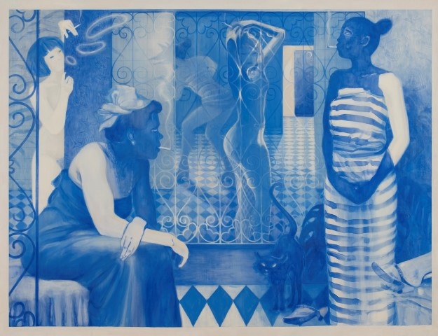 Returning to the women of art history, Lisa Brice’s paintings and works on paper are studies in selfhood. The conceptual gesture is simple: women drawn by woman. "The simple act of repainting an image of a woman previously painted by a man – re-authoring the work as by a woman," the artist suggests, "is a potent shift in itself." The figures she paints are more often monochromatic, reduced from fleshy tones to a single shade of cobalt blue. With her brush, Brice returns to these women an interior life, a subjectivity beyond their previous lives as objects of desire. If a nude, she asks, is a woman painted by men for men, what can she become when the male gaze is absent?