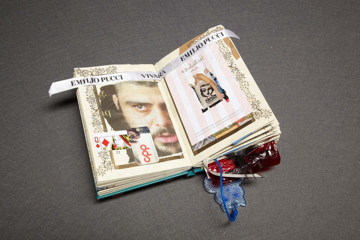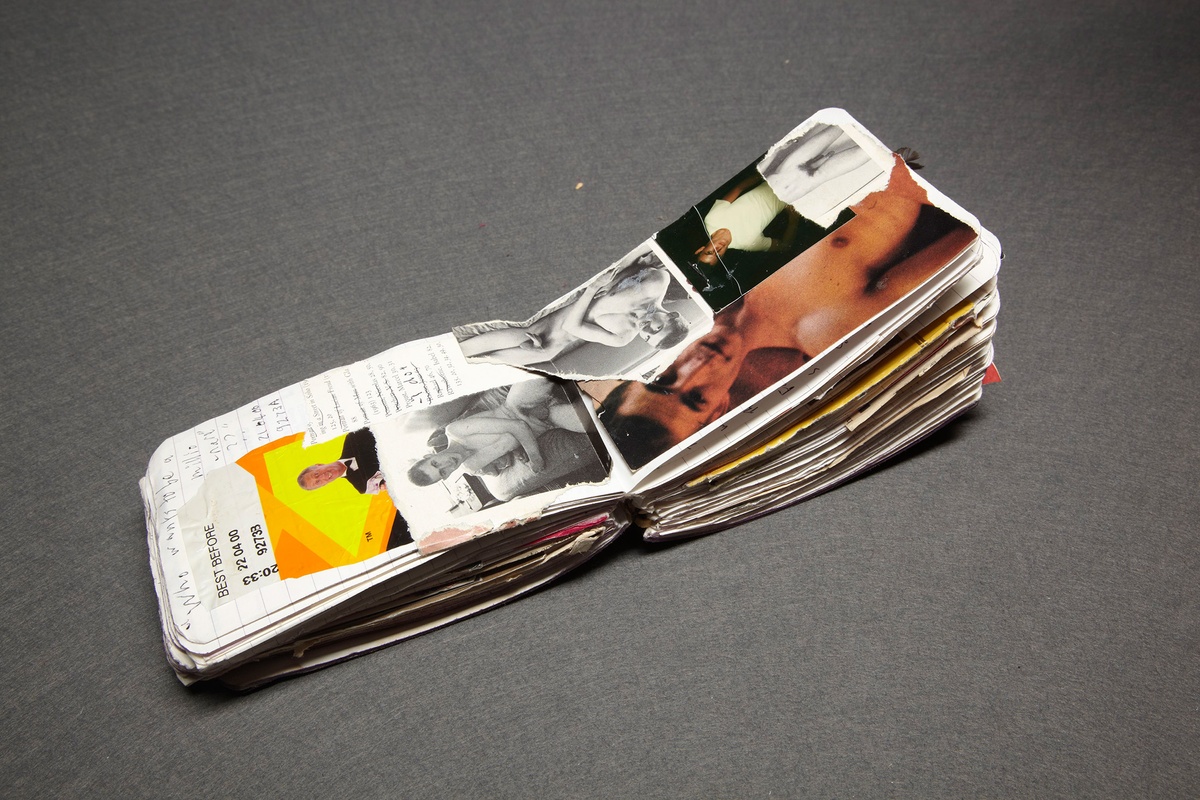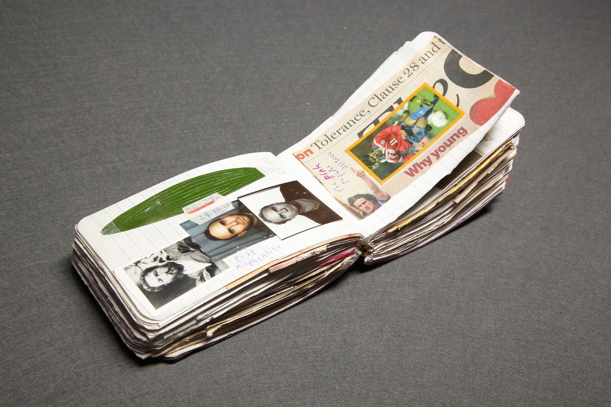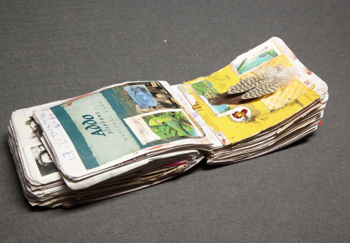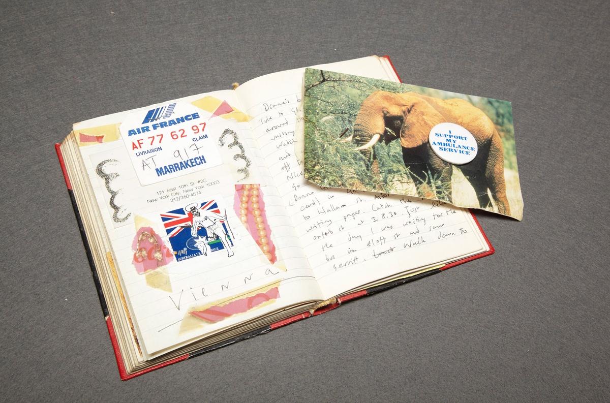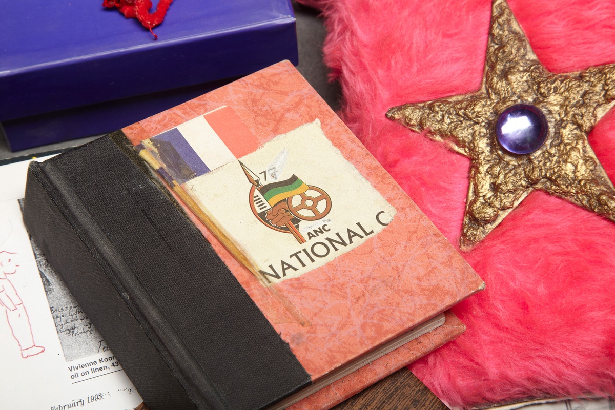 Artwork: George Tobias, Blue Cupboard with Diaries (1969–2009). Wooden cupboard with glass, Perspex and paper diaries. Artwork courtesy of Wits Arts Museum. Image © Sebastian Voigt.