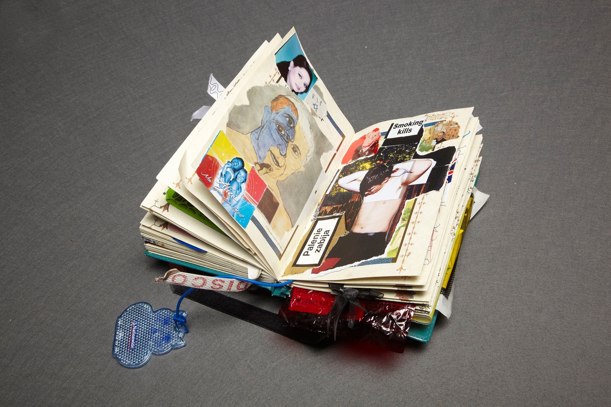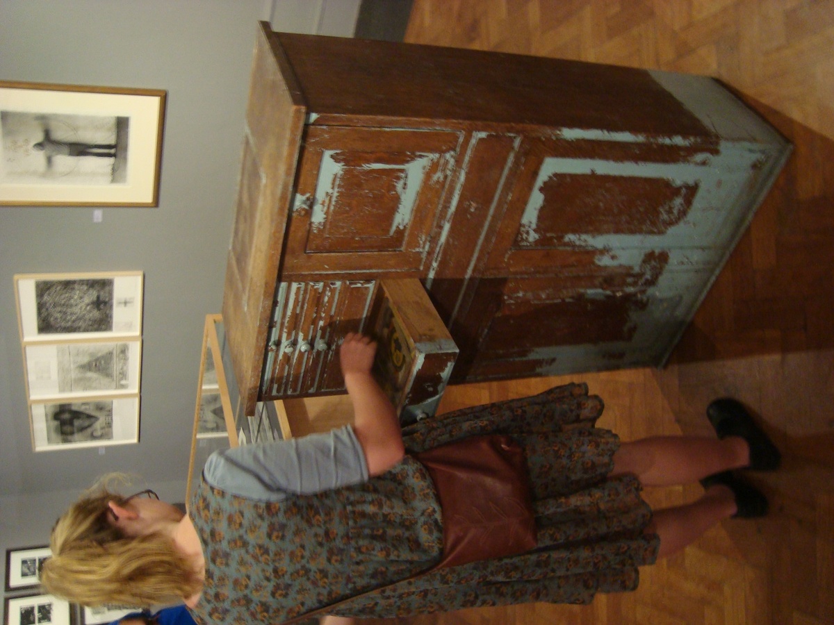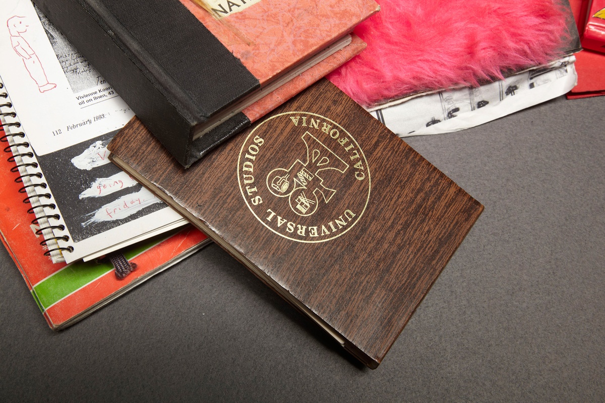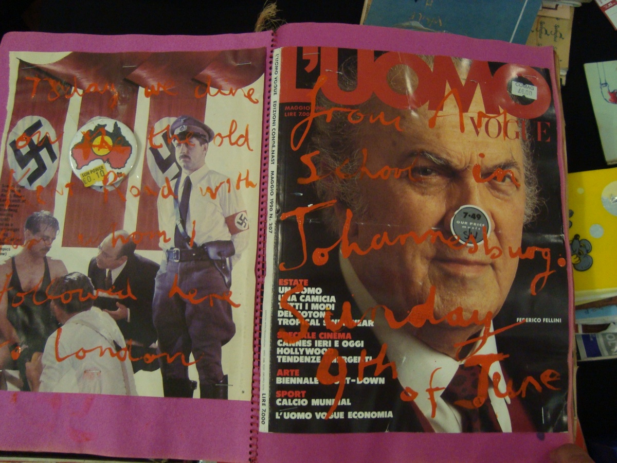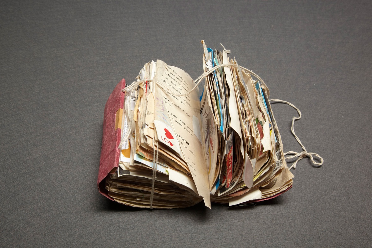 Artwork: George Tobias, Blue Cupboard with Diaries (1969–2009). Wooden cupboard with glass, Perspex and paper diaries. Artwork courtesy of Wits Arts Museum. Image © Sebastian Voigt.