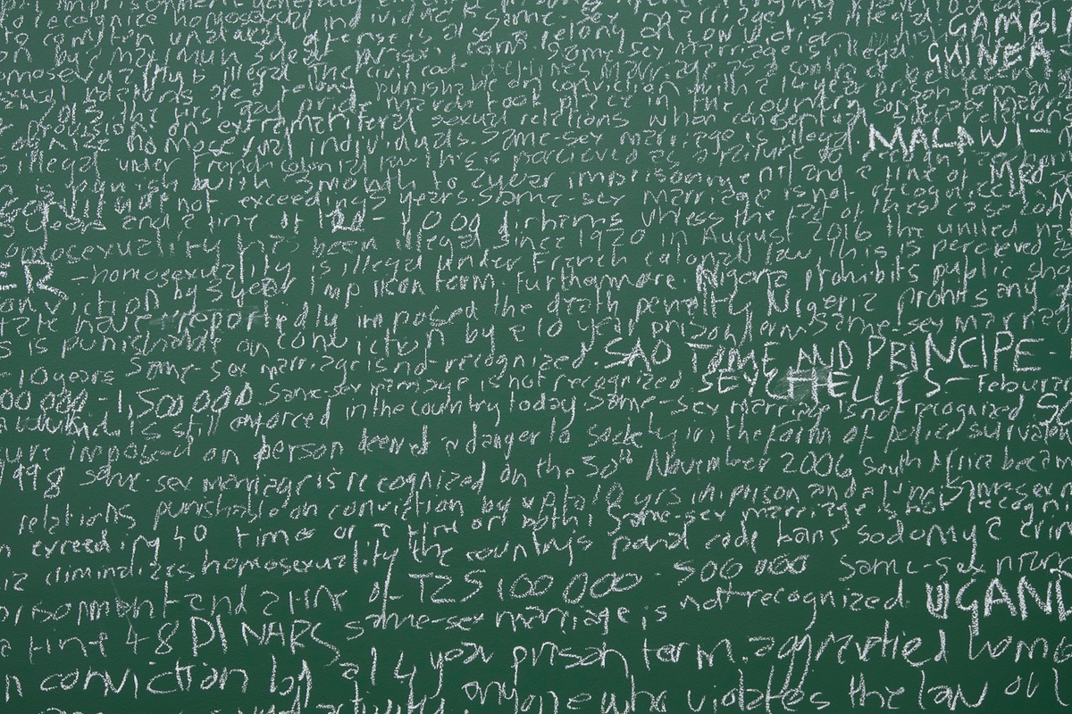 Artwork: Luvuyo Nyawose & Brett Charles Seiler, Reading Homophobia (2017). Performance, installation, chalk and chalkboard paint. Dimensions variable. Courtesy of the artists.