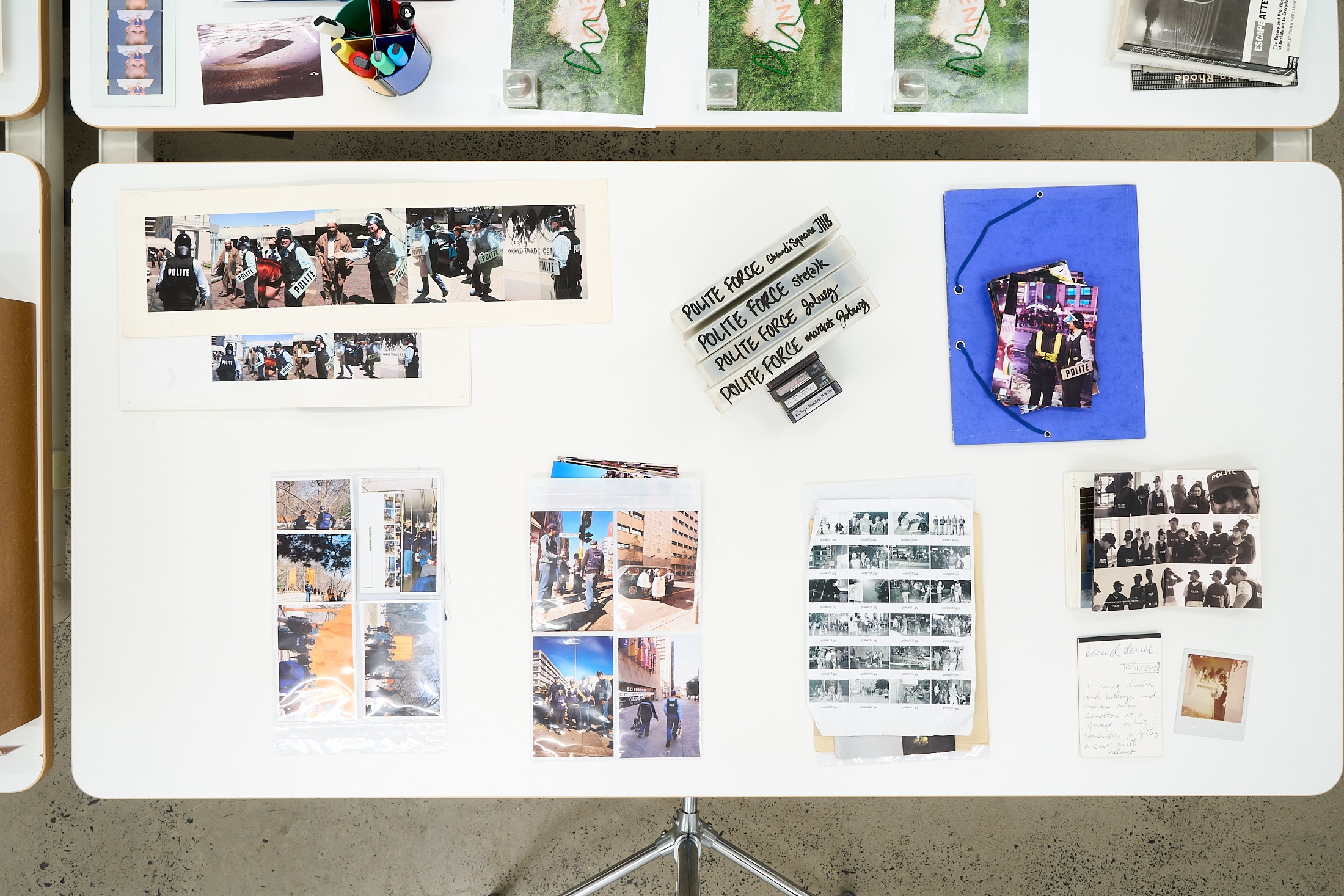Over the past two decades, Polite Force has accumulated a growing collection of related ephemera, of which A4 is custodian. An incidental history of the performance across time and place, as recalled in the digital inventory of the archive, is available to browse in A4's Special Collections. A selection of the physical archive, first unpacked in our Reading Room in 2021, was shown in A4’s booth at the 2022 Cape Town Art Fair to mark the project’s twentieth year.