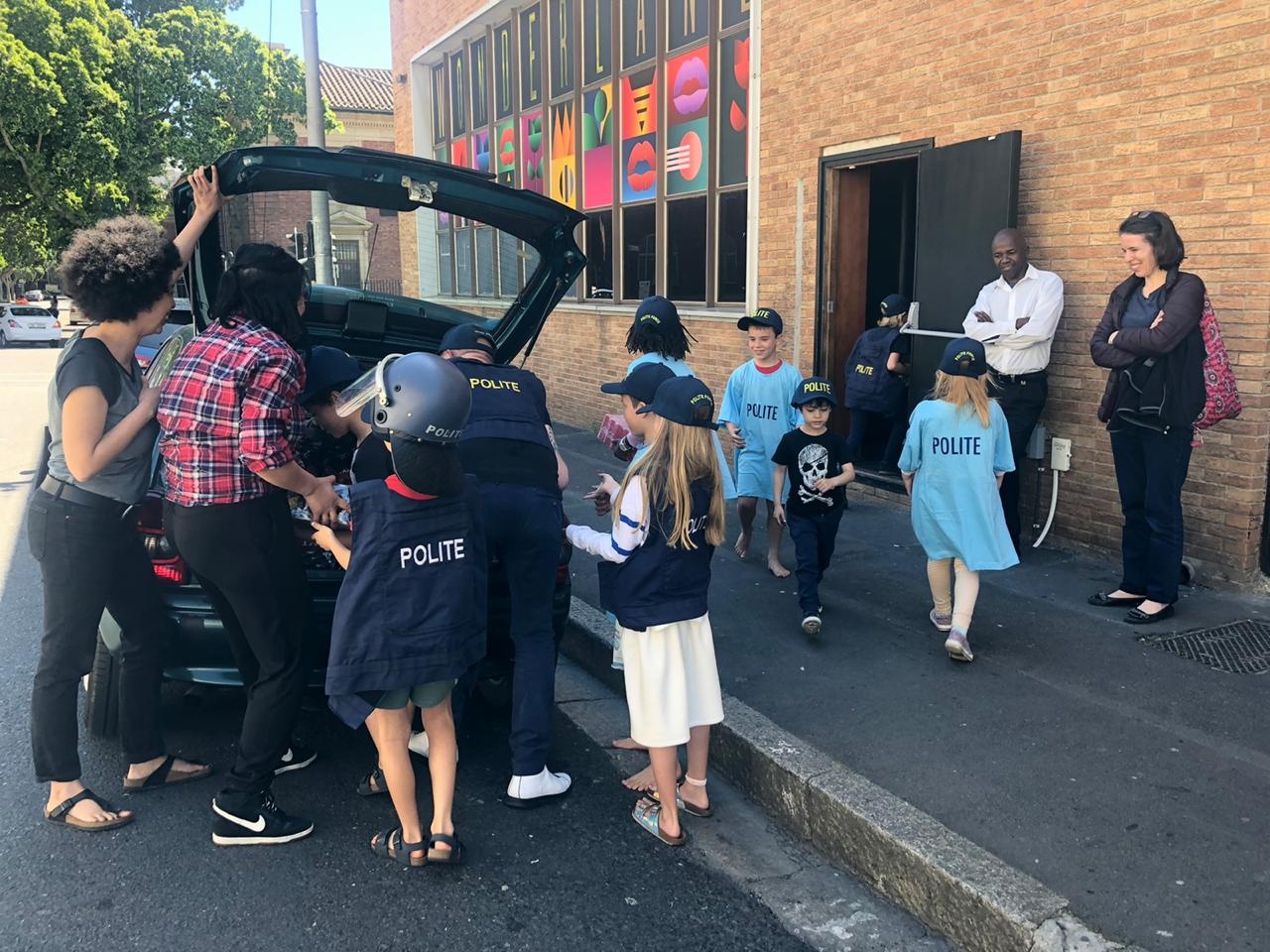 Christian Nerf’s Polite Force is both an invitation and an intervention. The invitation: to offer small kindnesses to strangers. The intervention: to instruct volunteer participants in gestures of polite helpfulness for the general public. Dressed in T-shirts, caps, bulletproof vests, and occasional riot gear emblazoned with POLITE (the colours and typeface reminiscent of the South African Police Service uniform), the participants roam the streets or given setting in leaderless ‘units’, offering directions, advice, assistance and greetings. The performance, which was first staged in 2002 outside the World Trade Centre, Johannesburg, with the late artist Barend de Wet as the sole Force member, has been repeated numerous times since –