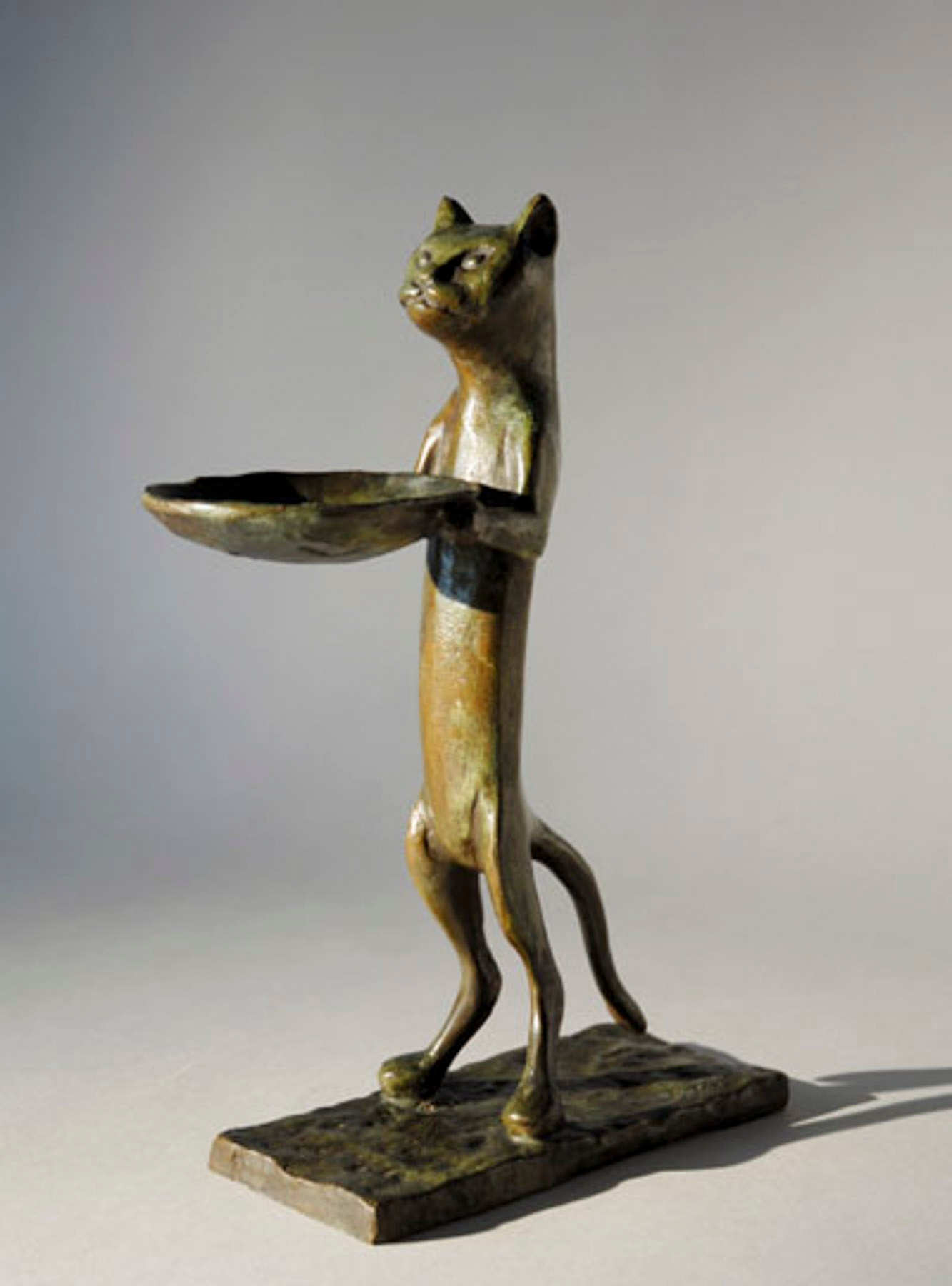 Artwork: Diego Giacometti, Chat maître-d’hôtel (Cat Butler) (c. 1970). Bronze with dark brown patina. 29 cm. Private collection.