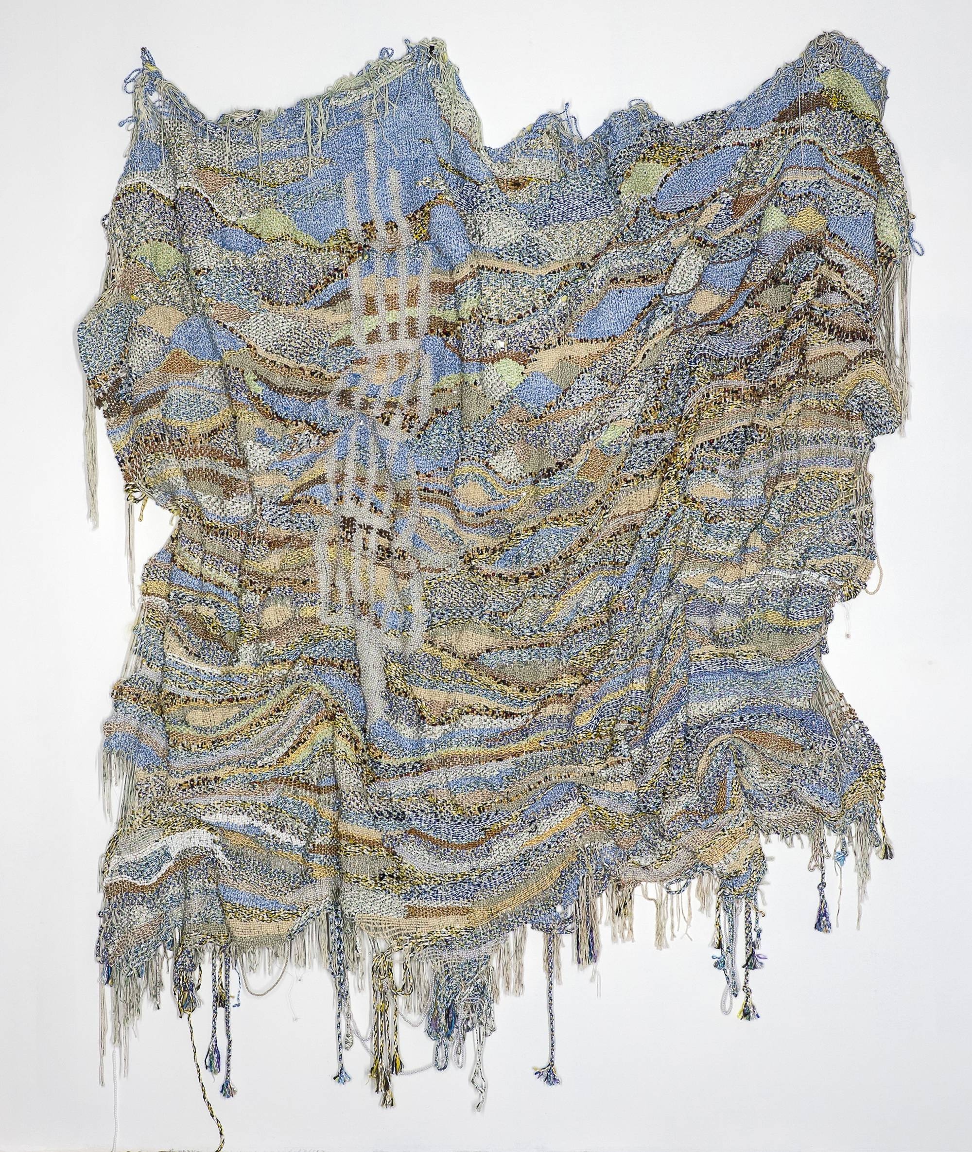 The Path of the Upright is named for a line in the first chapter of the Qur’an, a line to which Adams returns for guidance and solace. His is a mystical engagement with faith, one that lends itself to both abstraction and repetitive gesture as prayer. The work is made mainly from synthetic rope – the kind most often used for domestic washing lines. While its materials are humble, even banal, its composition is invested with a quiet, spiritual inquiry. The work's undulating form perhaps suggests that the Path of the Upright is not a way clearly laid, but rather faint or indistinct.