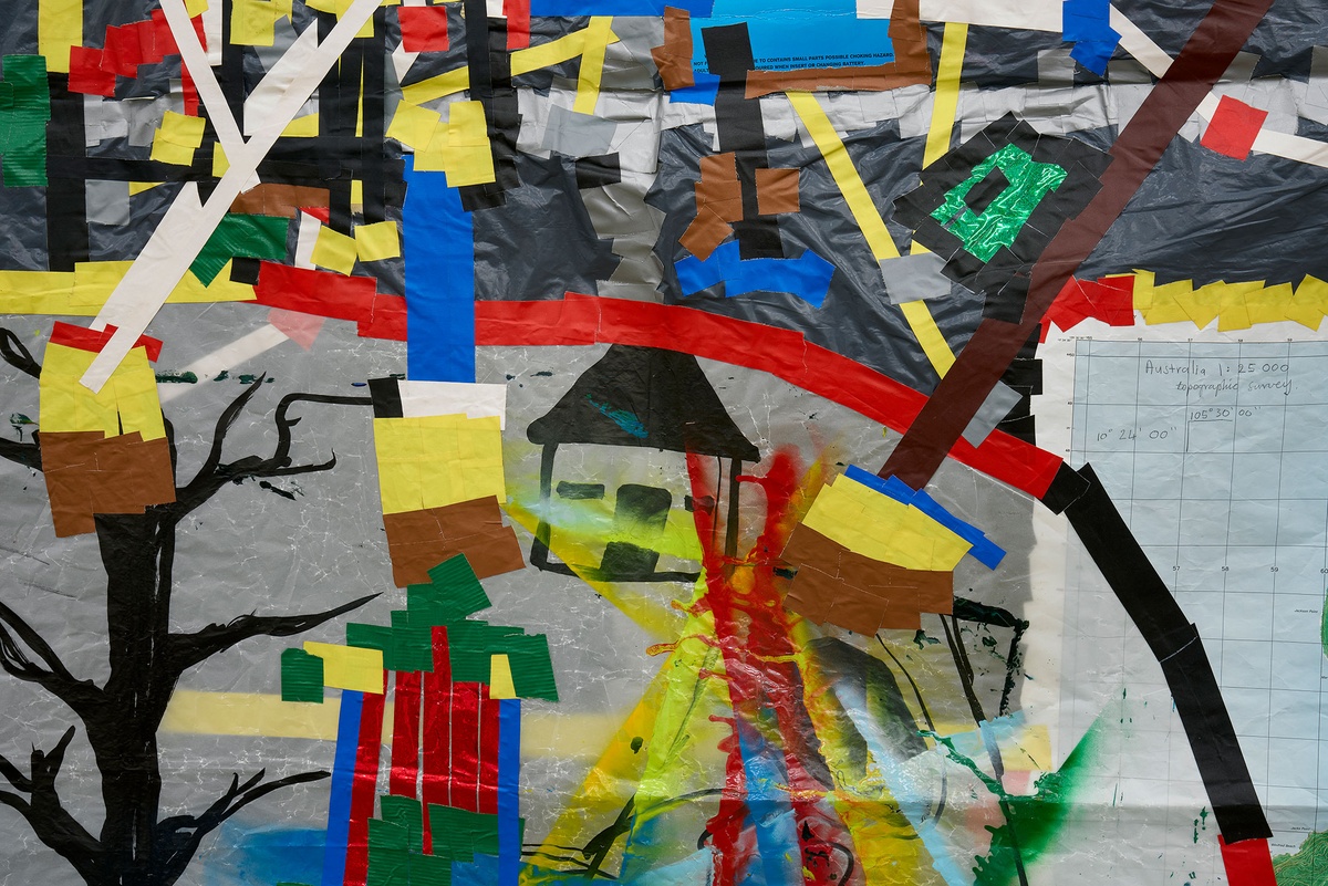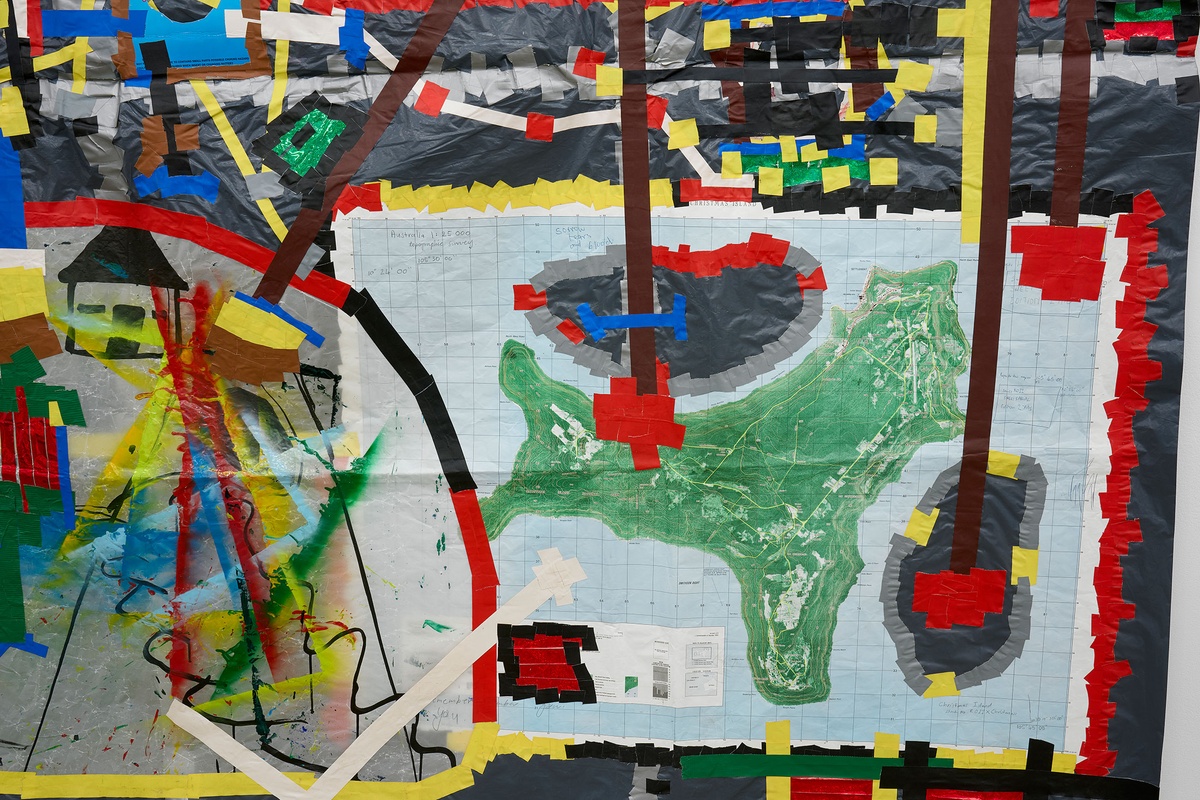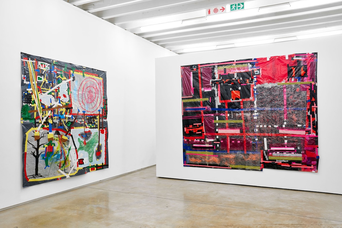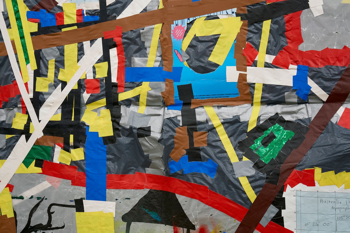 Artwork: Moshekwa Langa, Collapsing Guide II (2000–2003). Mixed media collage on plastic film. 236 x 234 cm. Courtesy of the artist and Stevenson.