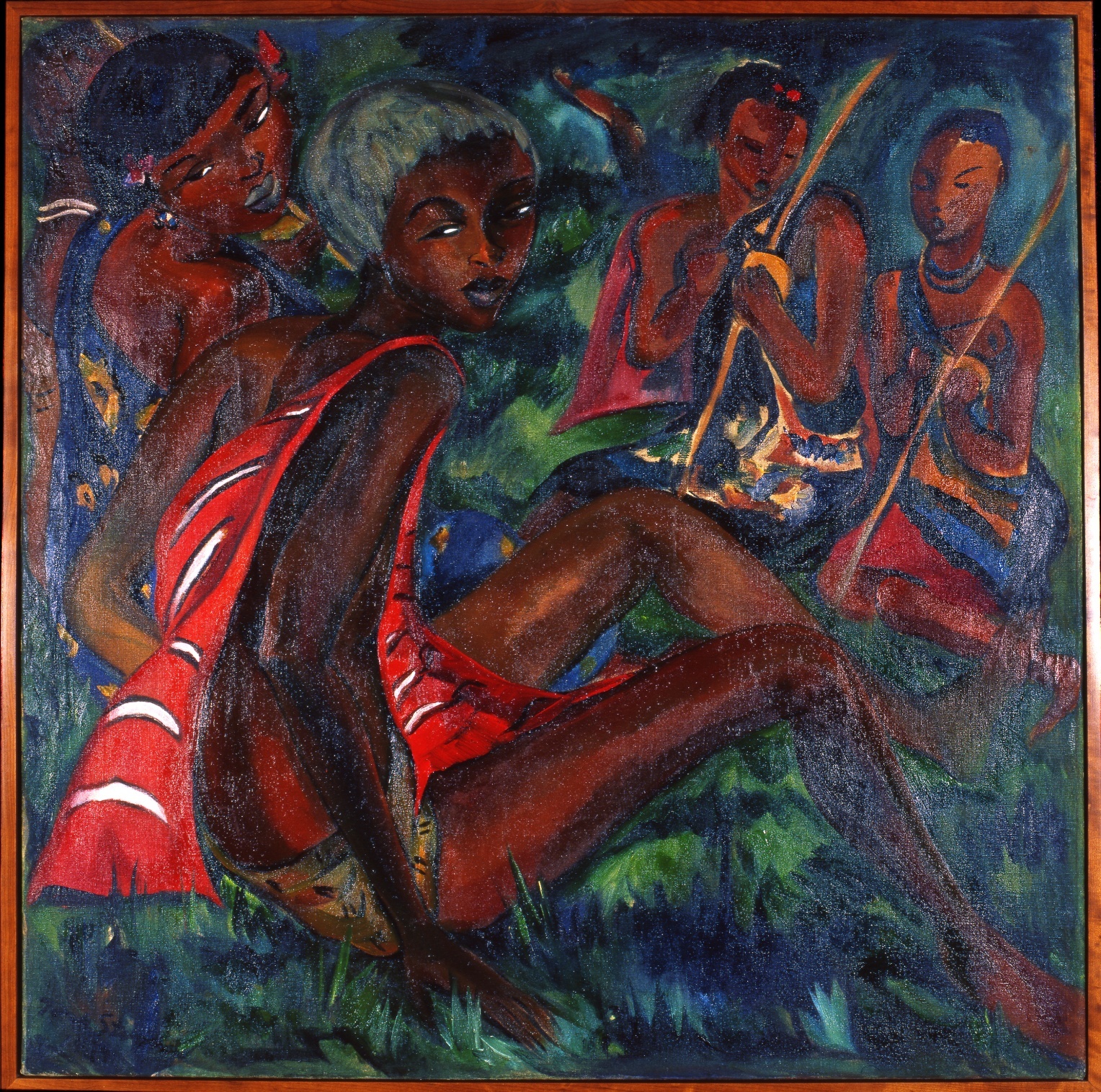 It is among the many ironies of colonialism that a European artist might find a reflection of spiritual purity in the very people it oppressed, that they might find a vision of utopia in a place so often described as uncivilised and savage. Such was Stern's romantic relationship to all things ‘native’ and ‘tribal’, to which paintings such as Swazi Women Musicians attest. “Searching, I roamed the world – to arrive at the origin,” Stern wrote with telegraphic phrasing, “– at beauty – at truth – away from the lies of everyday – and my longing was burning hot – then the darkness opened up and I stood at the source of the Beginning – Paradise.”