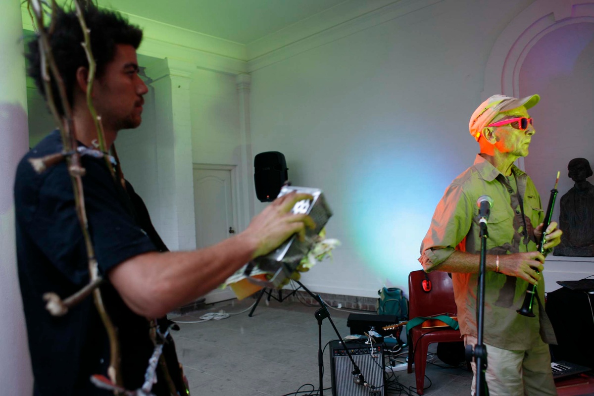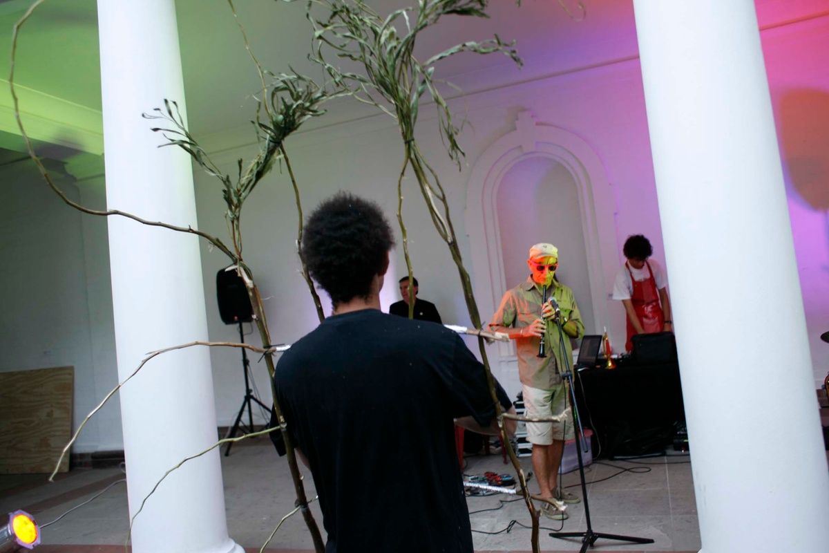 Artwork: Brendon Bussy & AS IS (Garth Erasmus, Manfred Zylla, Niklas Zimmer, Roderick Sauls), Untitled (2009). Experimental music and Dada sound performance. Artwork courtesy of the artists. Image © Esti Strydom.