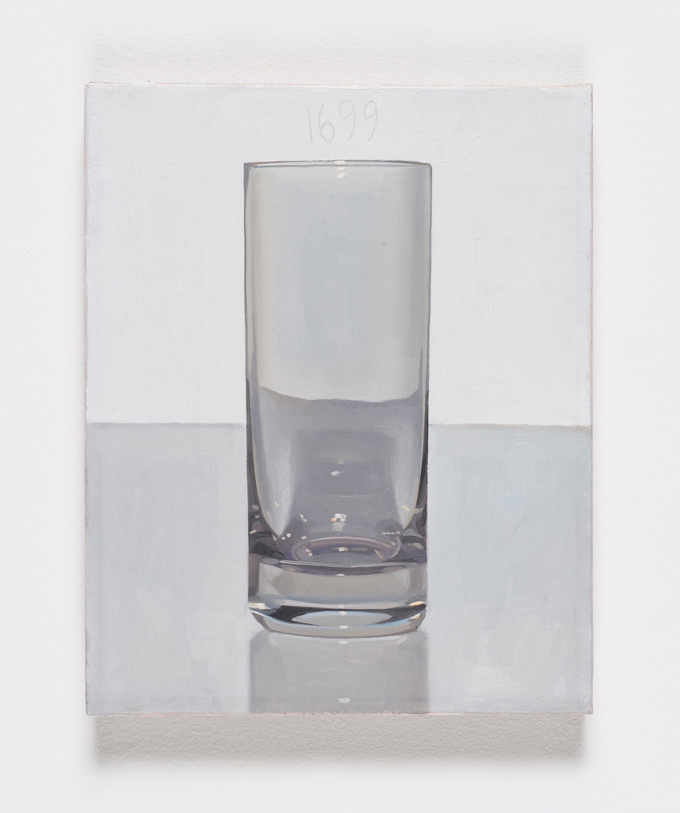 That an empty glass on a table might prove a compelling subject for over forty years and more than five thousand paintings of modest scale is perhaps surprising. To Dreher, however, returning time and again to the same glass in the same corner of his studio every day and every night, the series became a study in sameness and difference. From 1974 until his death, Tag um Tag guter Tag (variously translated as Day by Day Good Day and Every Day Is a Good Day after the Buddhist proverb) is an accumulation of small revelations: the glass seen again and anew, “as if I were seeing it for the first time.” In the artist’s dedication to repetition, critic Emily Hall wrote, the collected pictures become “an aggregate of still paintings and temporal movement, like a decades-long filmstrip that follows no logic and evinces no progression.” The discrete paintings are coloured by subtle shifts in tone; the studio window reflected in the glass marking the time of day; at night, a light fixture. “The confinement to a single motif,” Dreher said of his many glasses –